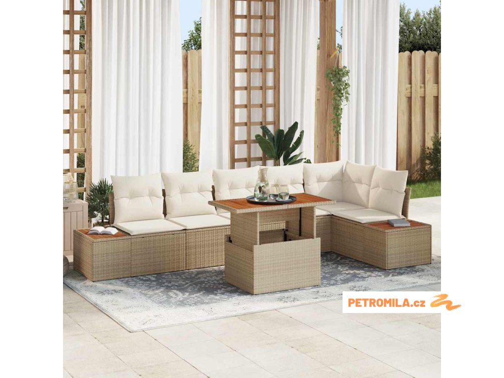 Zahradní jídelní souprava s polštářem 7 pcs Béžová a krémová