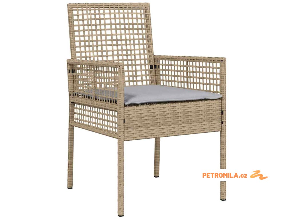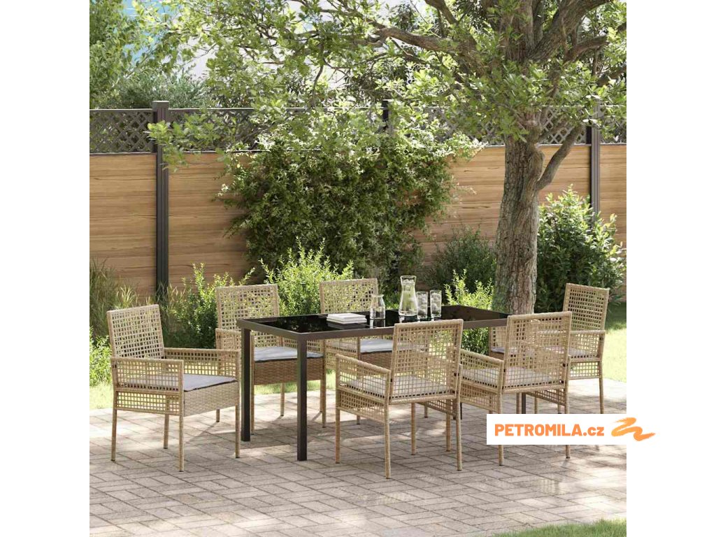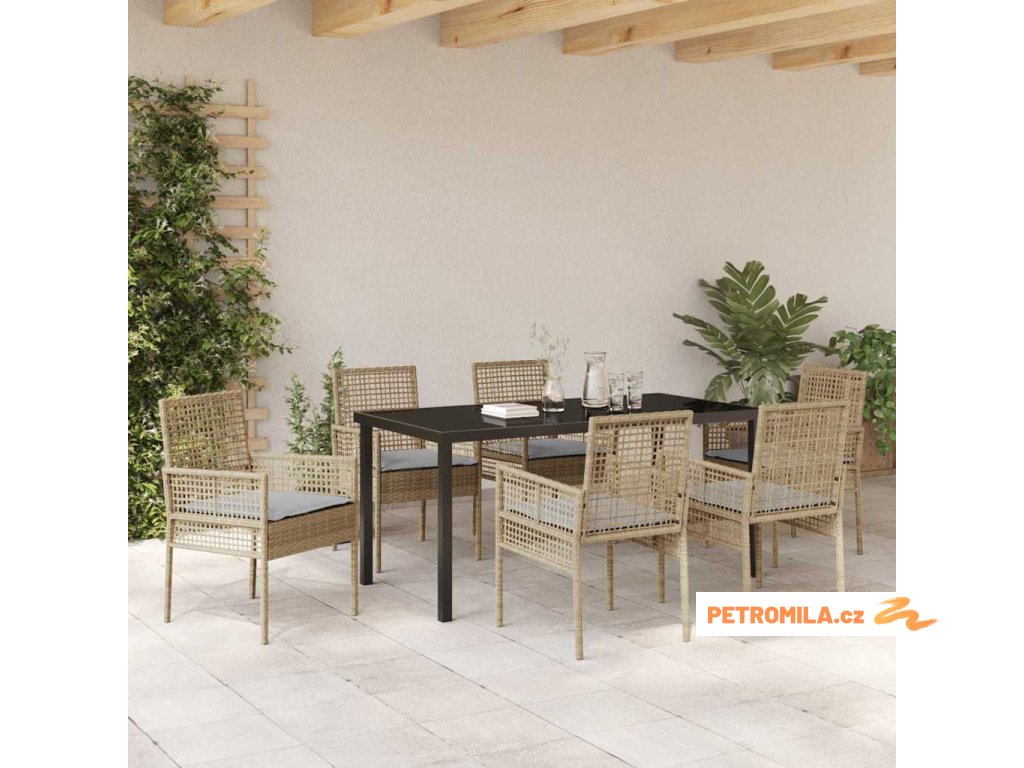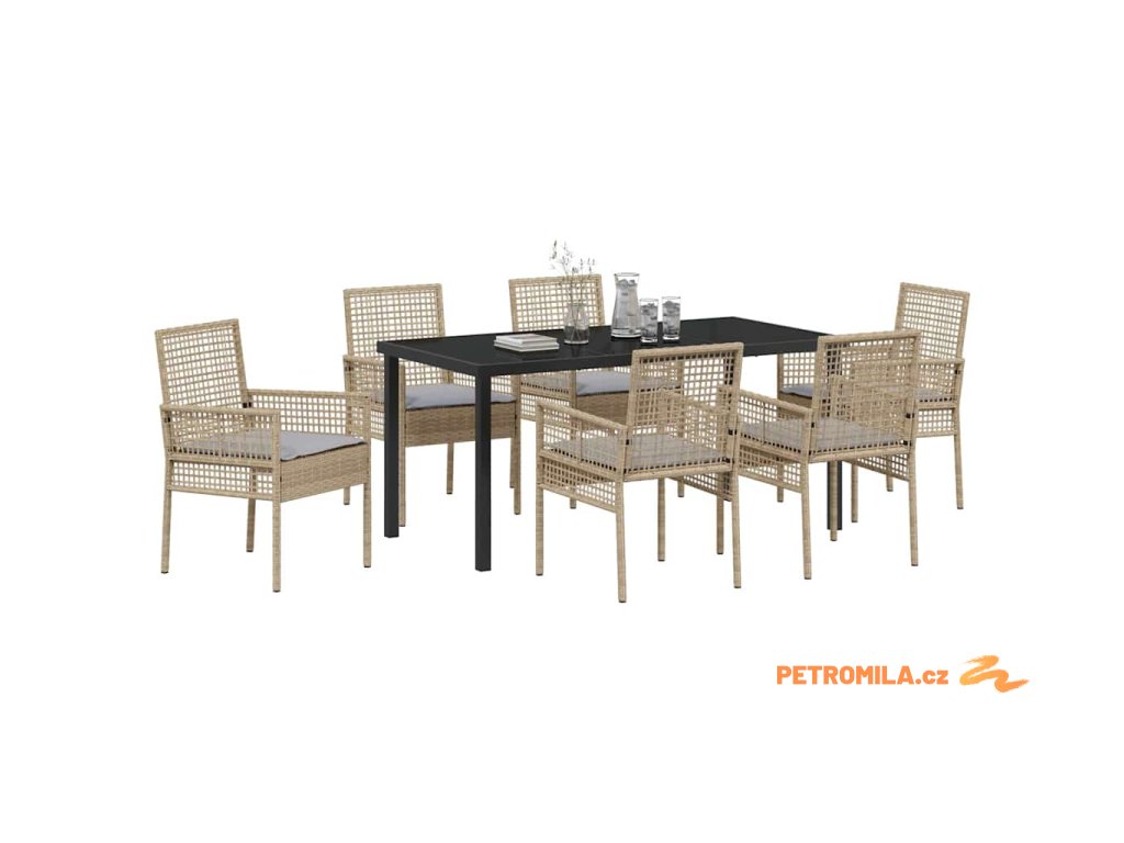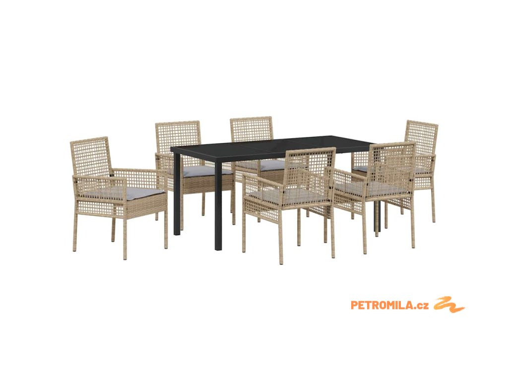 Zahradní jídelní souprava s polštářem 7 pcs Béžová Poly ratan