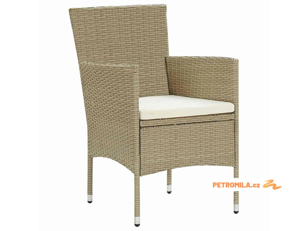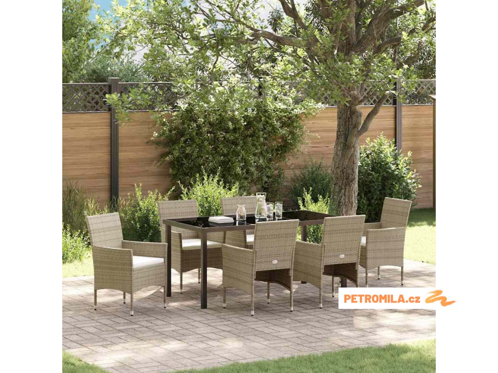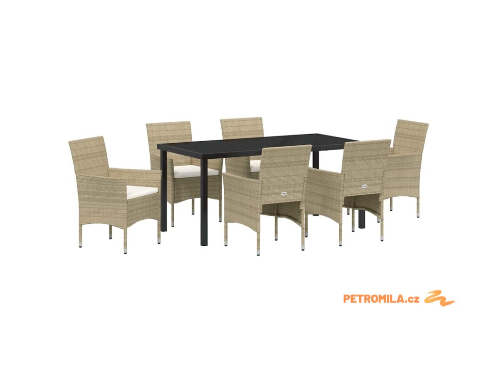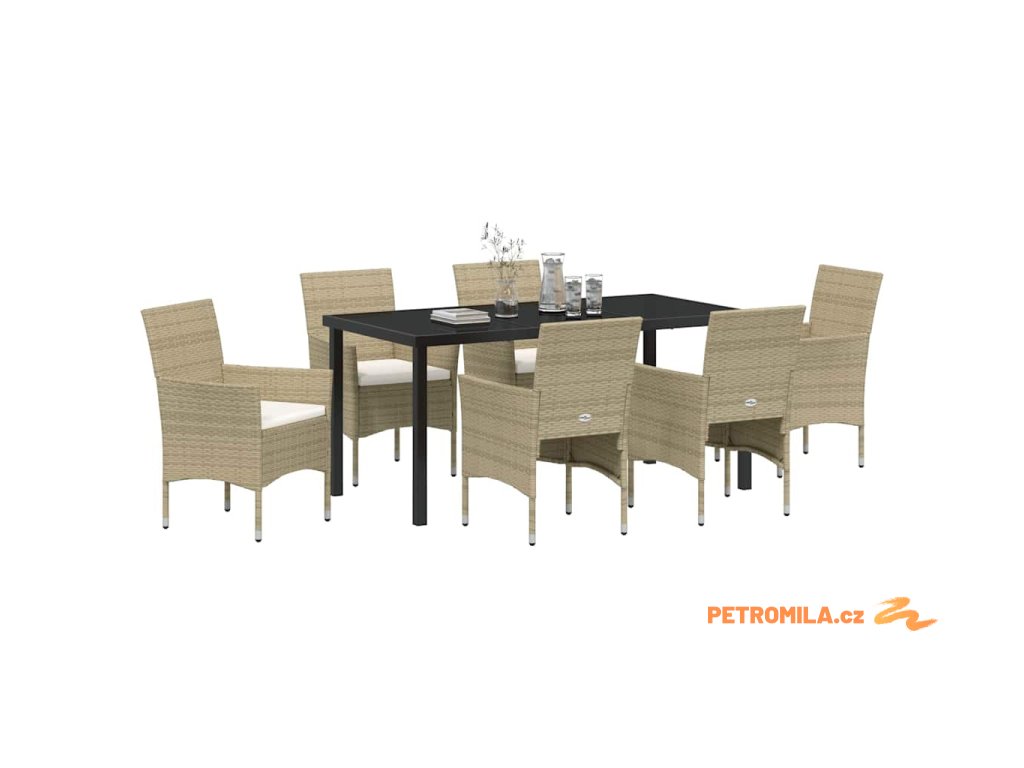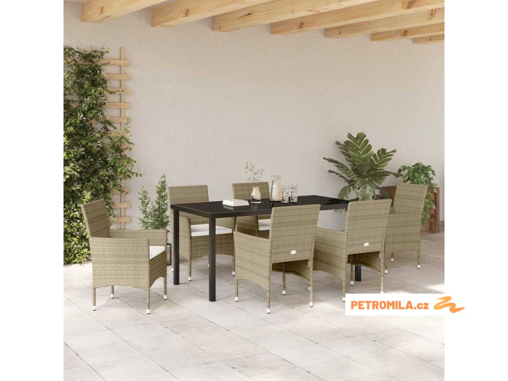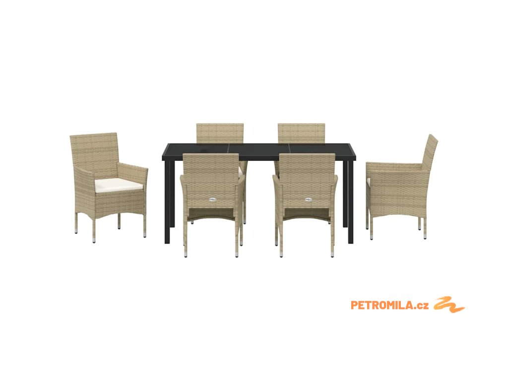 Zahradní jídelní souprava s polštářem 7 pcs Béžová Poly ratan