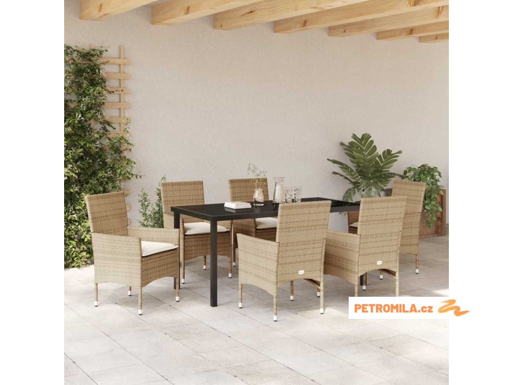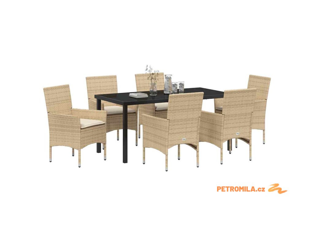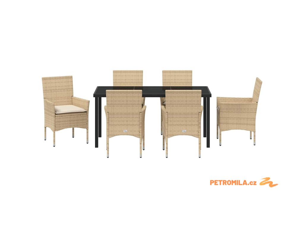 Zahradní jídelní souprava s polštářem 7 pcs Béžová Poly ratan