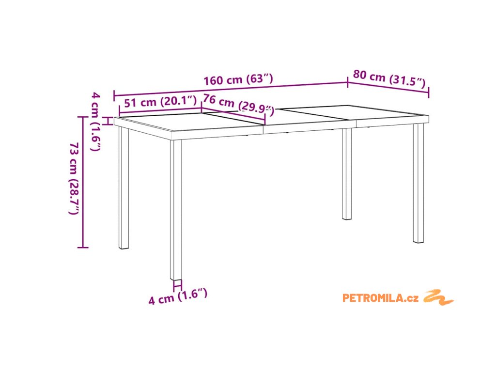 - 1 x Zahradní stůl: 160 x 80 x 73 cm (D x Š x V)