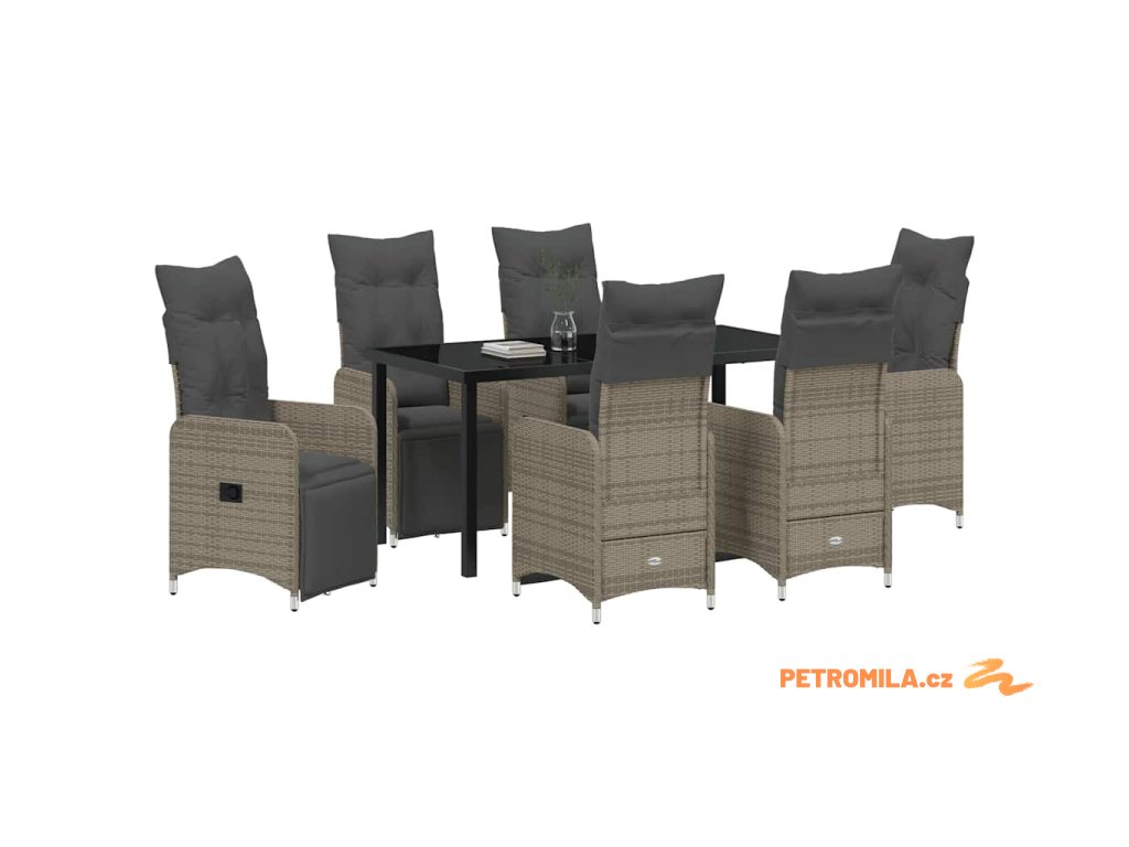 - Celá sada komponentů: Set zahrnuje pohodlné poly ratanové opěrky i zádové opěrky, stylový povrch z tvrzeného skla a čtvercové nohy z práškově lakované oceli. Tím se zajišťuje elegantní a stabilní vzhled, navíc jsou součástí venkovní polštáře s odolnou tkaninou a odnímatelnými, pratelnými potahy.