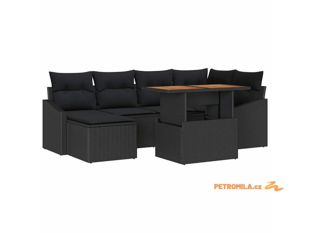 Zahradní jídelní souprava s polštářem 7 pcs Černá a hnědá