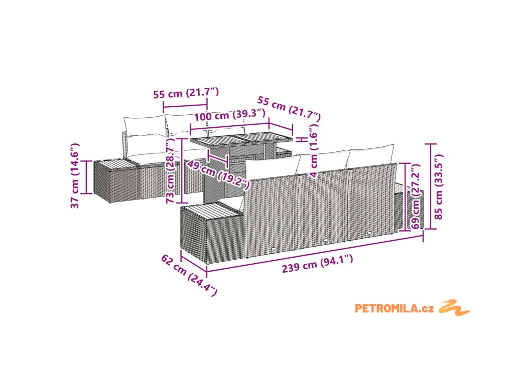 - 4 x boční sofa včetně úložné funkce