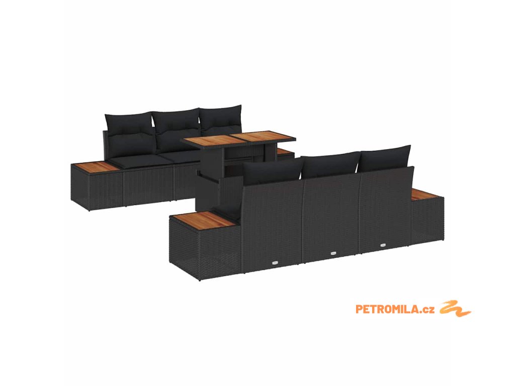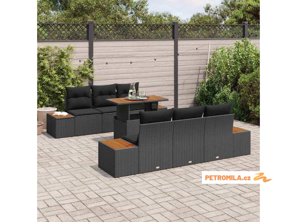 - Materiály: Vyrobený z kvalitního poly ratanu, tento set vydrží různé počasí a má elegantní, moderní vzhled. Pevný ocelový rám, potažený práškovou barvou, brání rzi, zatímco akáciové dřevěné povrchy dodávají stylový prvek, kombinující trvanlivost s estetikou.