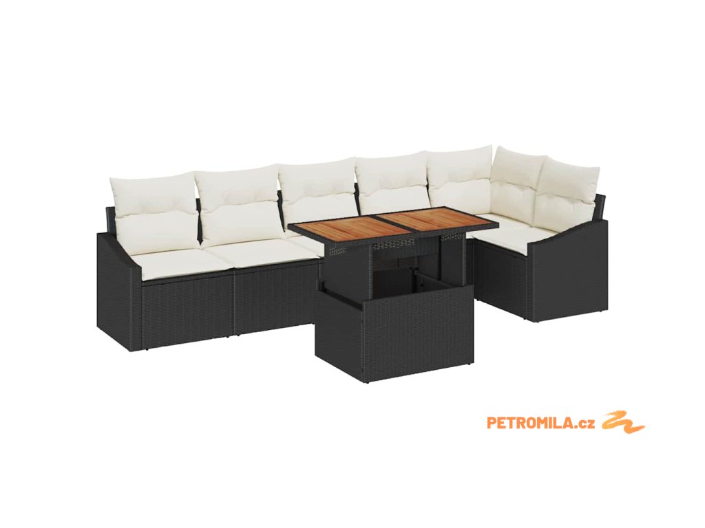 Zahradní jídelní souprava s polštářem 7 pcs Černá a krémová