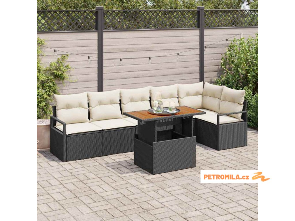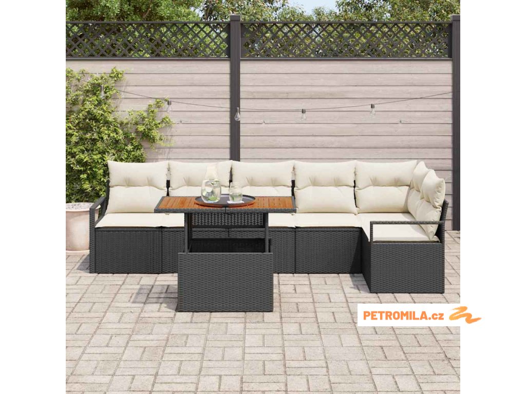 Zahradní jídelní souprava s polštářem 7 pcs Černá a krémová