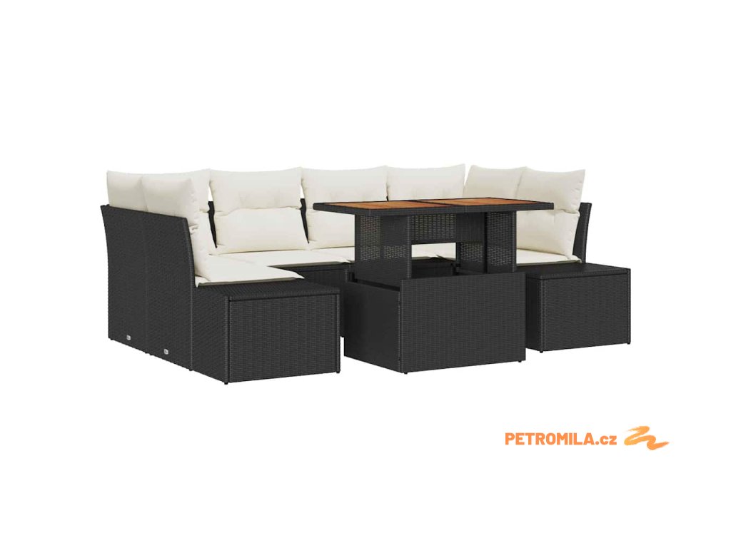 Zahradní jídelní souprava s polštářem 7 pcs Černá a krémová