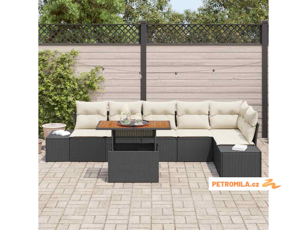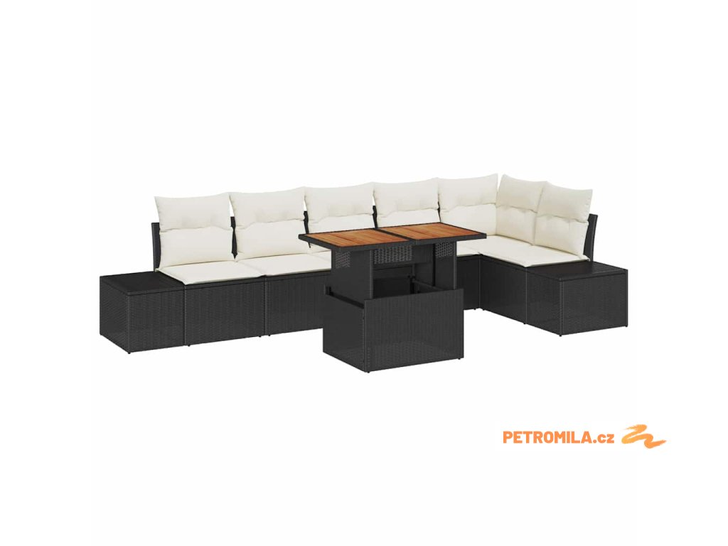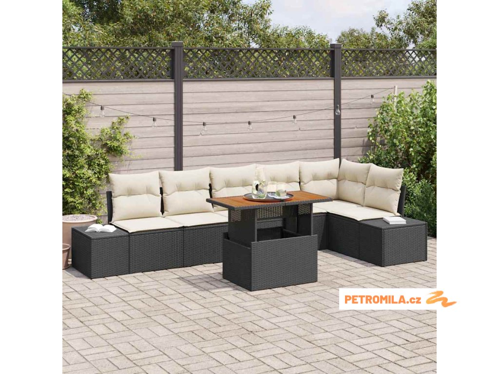 Zahradní jídelní souprava s polštářem 7 pcs Černá a krémová