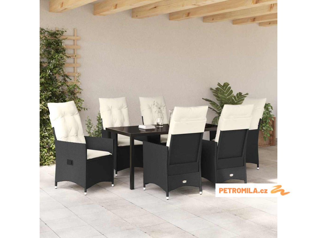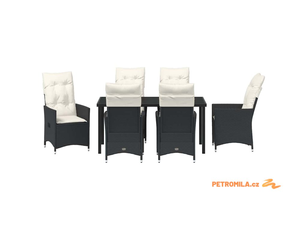 Zahradní jídelní souprava s polštářem 7 pcs Černá Poly ratan