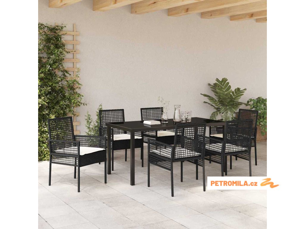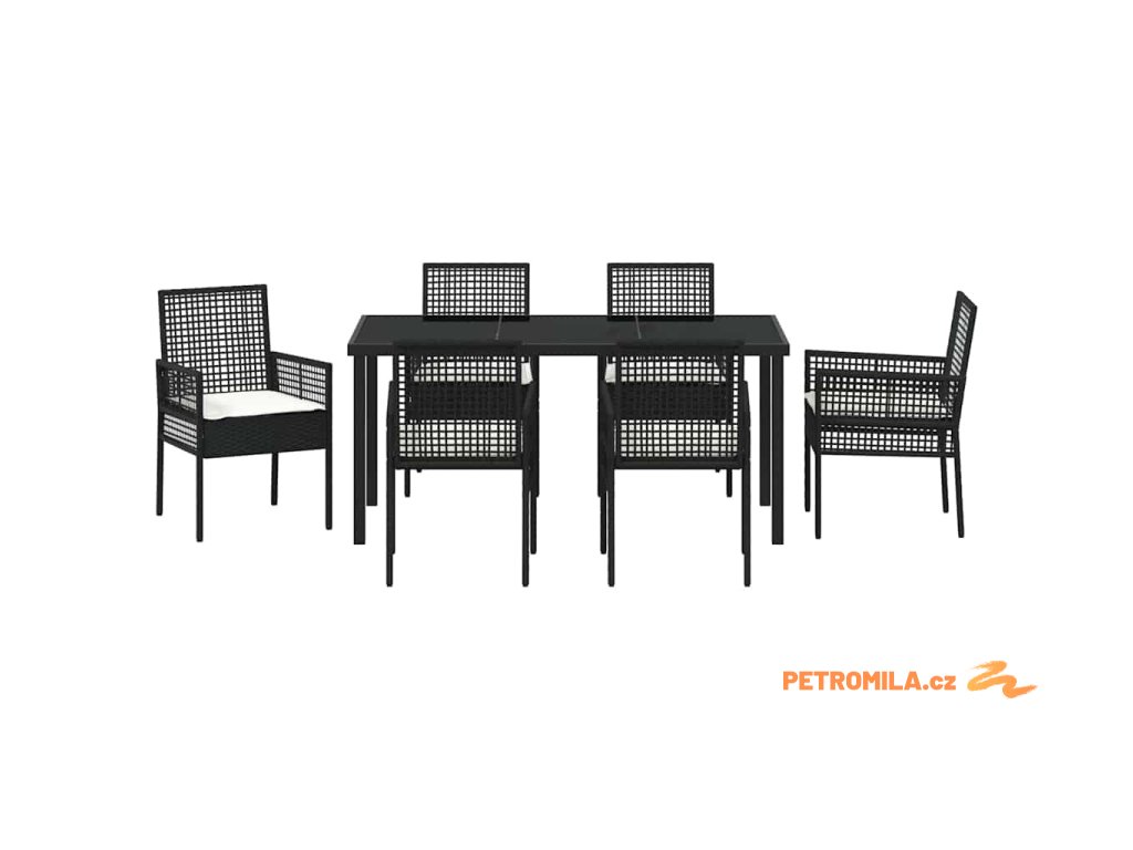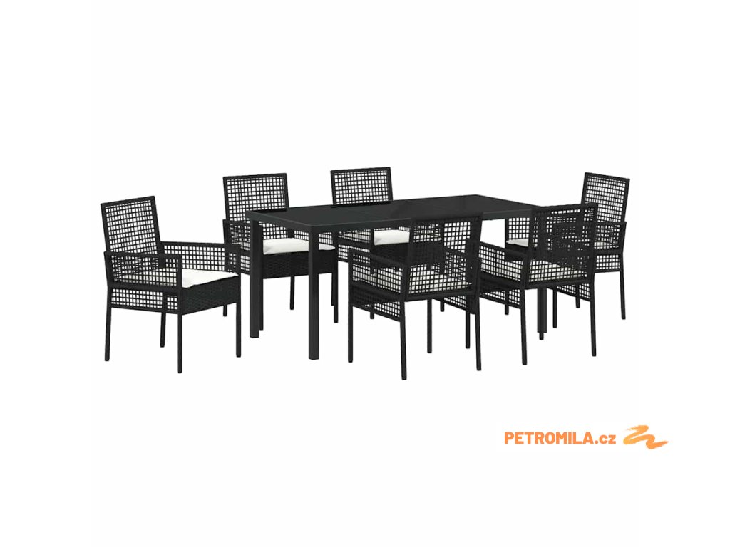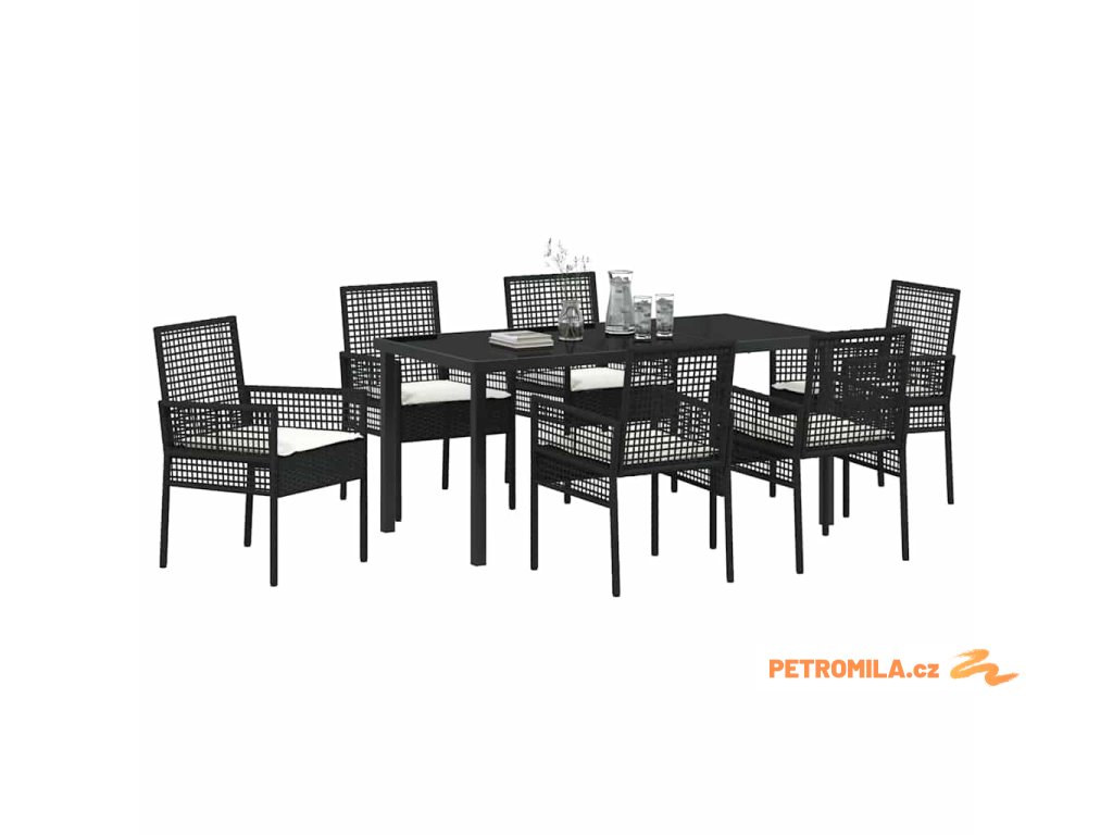 Zahradní jídelní souprava s polštářem 7 pcs Černá Poly ratan