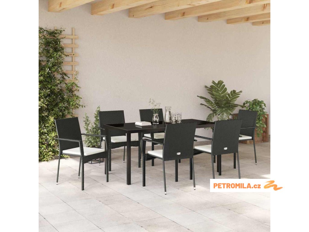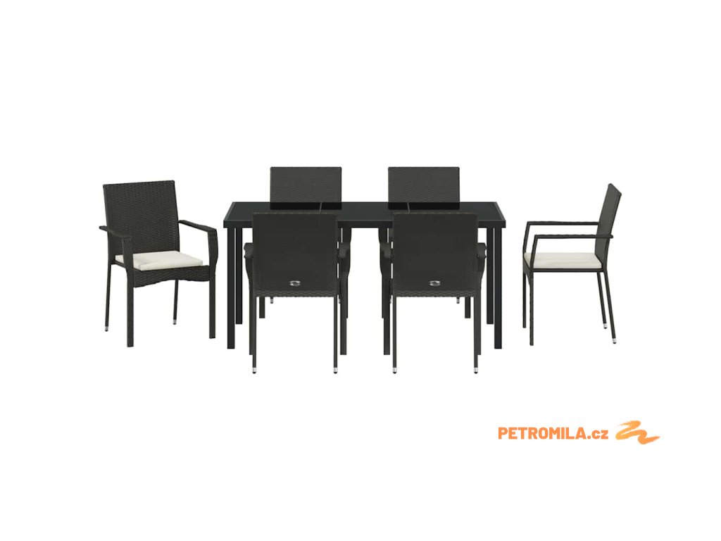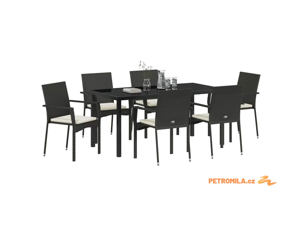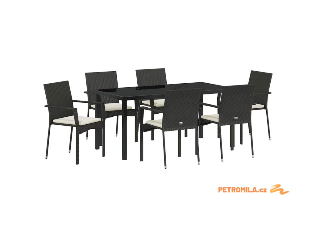 Zahradní jídelní souprava s polštářem 7 pcs Černá Poly ratan