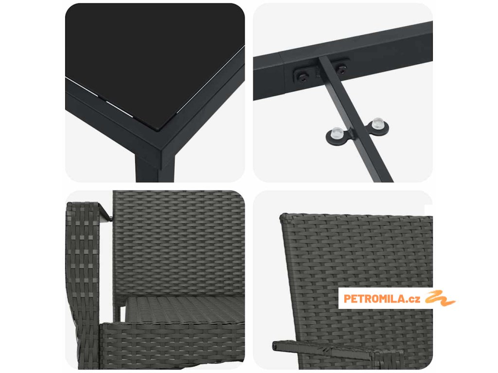 - Ergonomická Opěradla a Opěrky Rukou: Důmyslně navržené s pohodlnými opěradly a plochými opěrkami rukou z poly ratanu, takže se ti bude příjemně sedět. Díky tomu si venku parádně odpočineš.