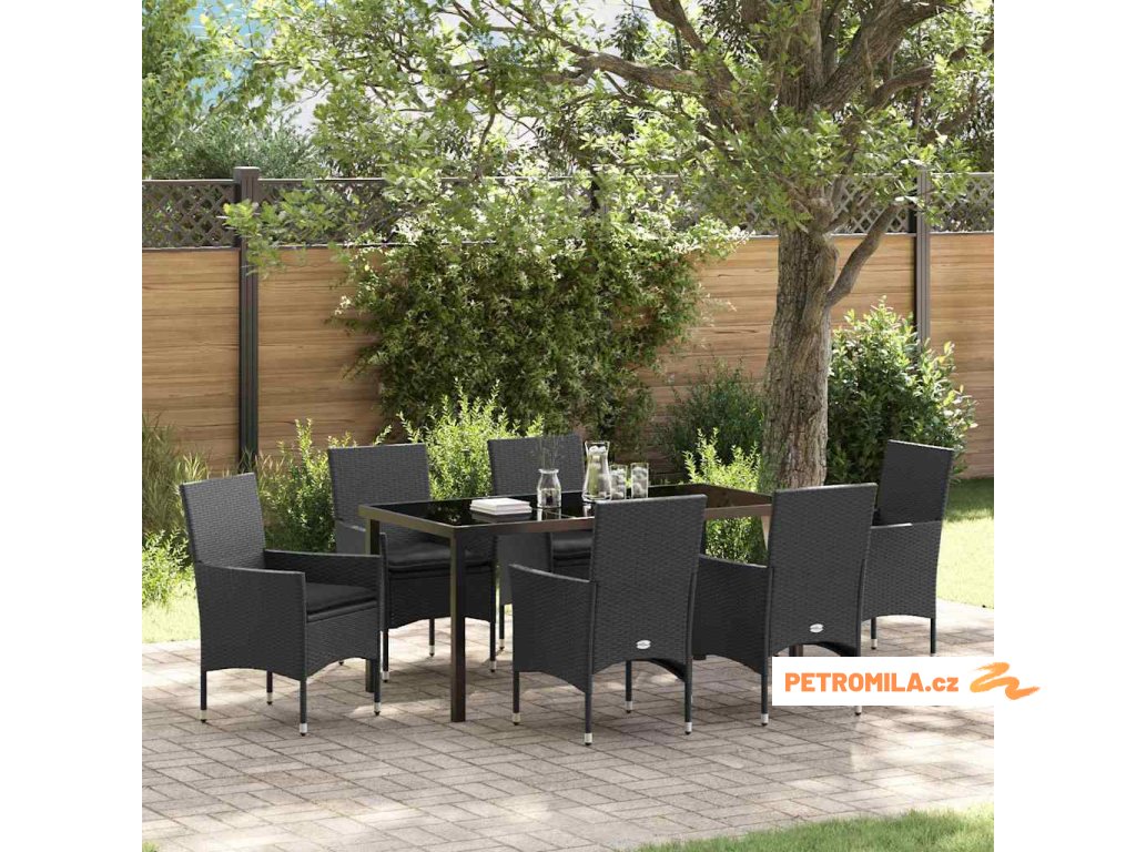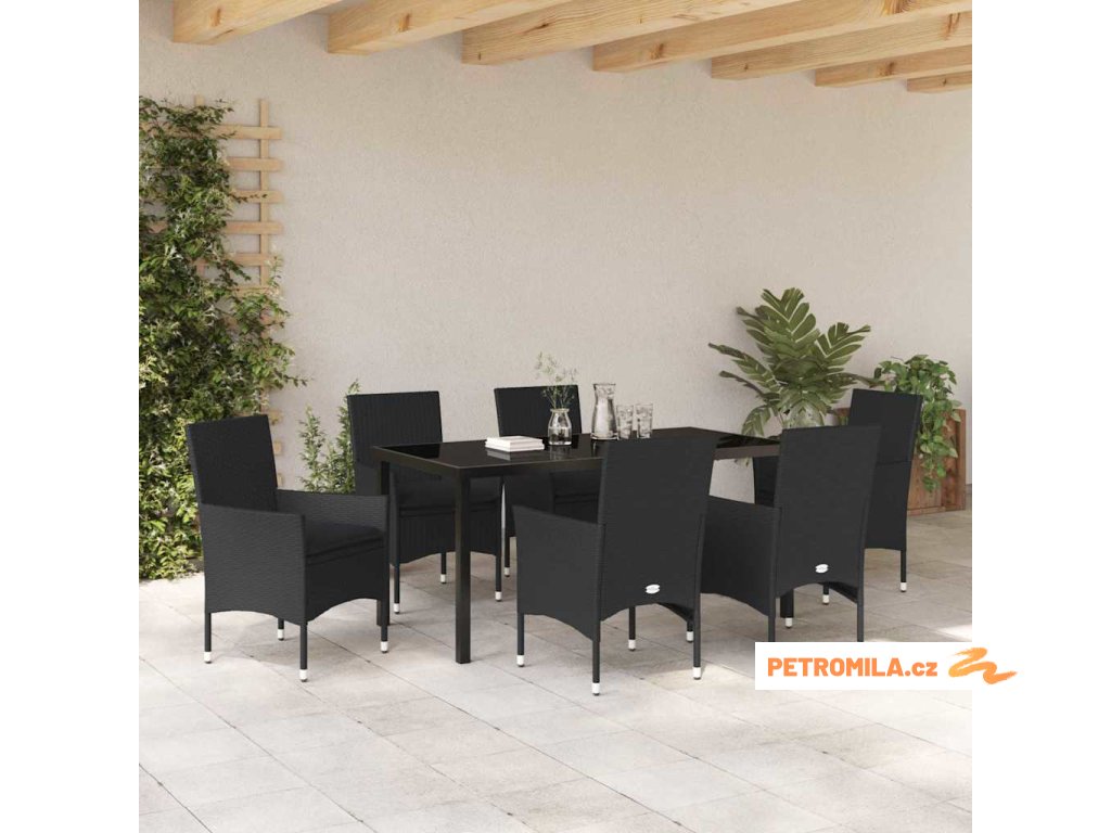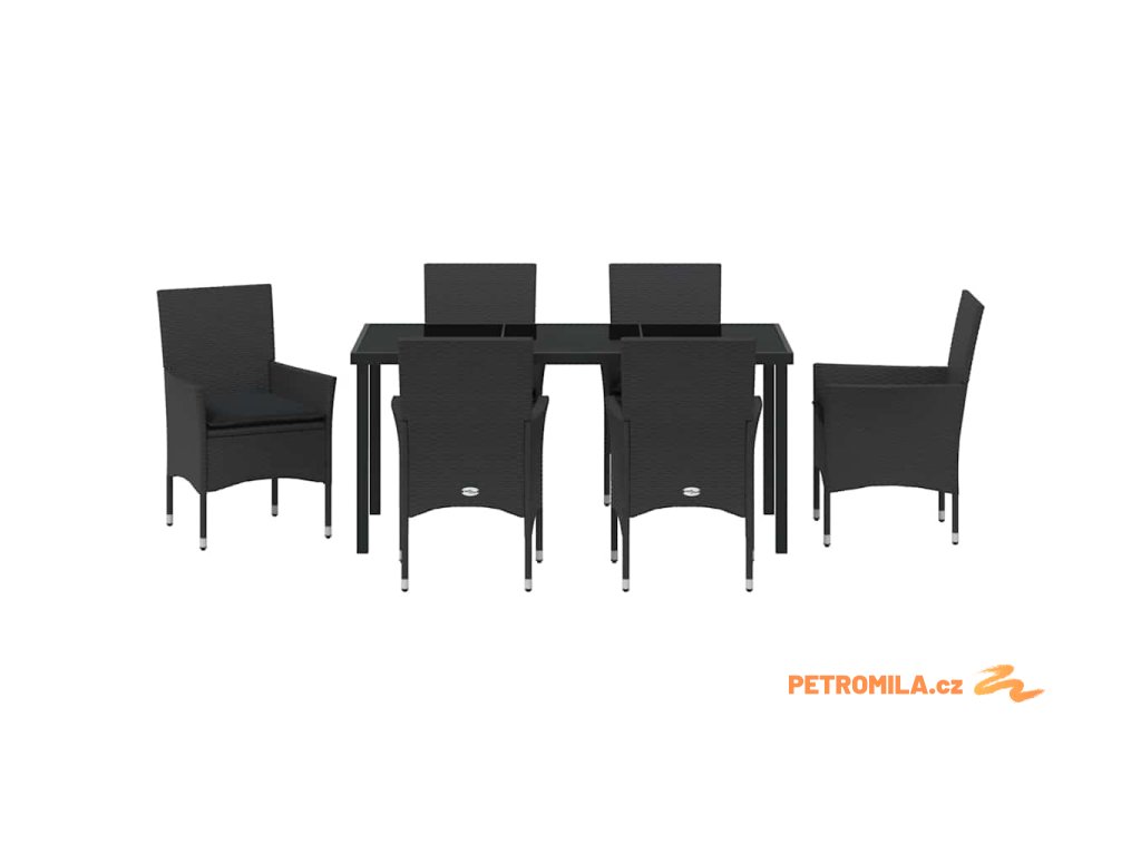 Zahradní jídelní souprava s polštářem 7 pcs Černá Poly ratan