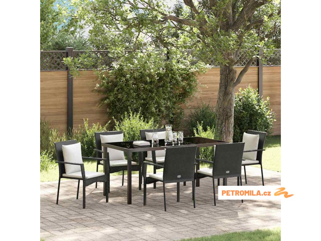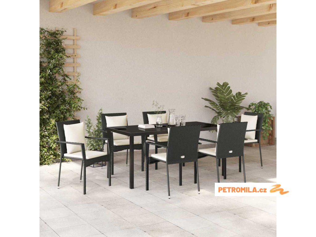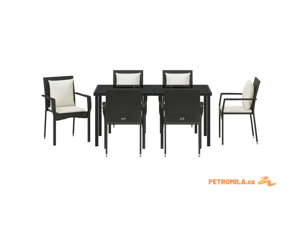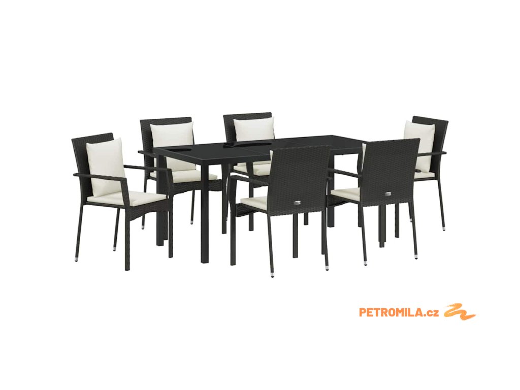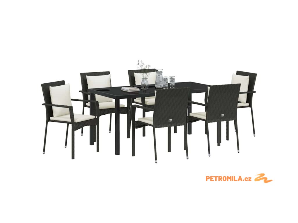 Zahradní jídelní souprava s polštářem 7 pcs Černá Poly ratan