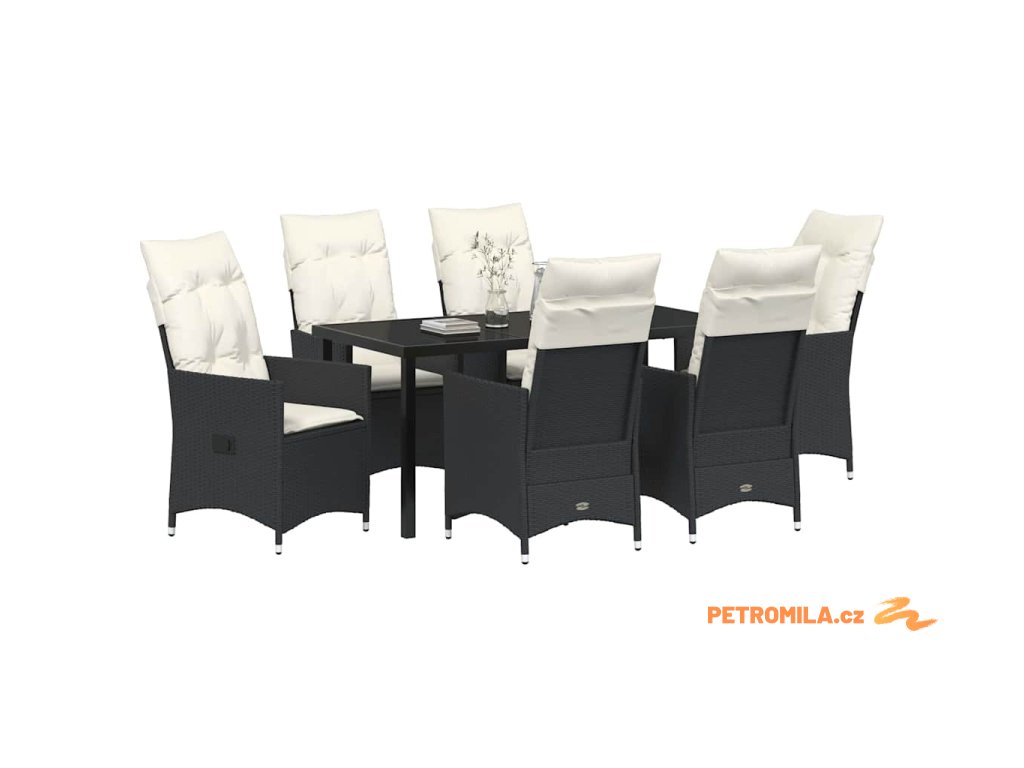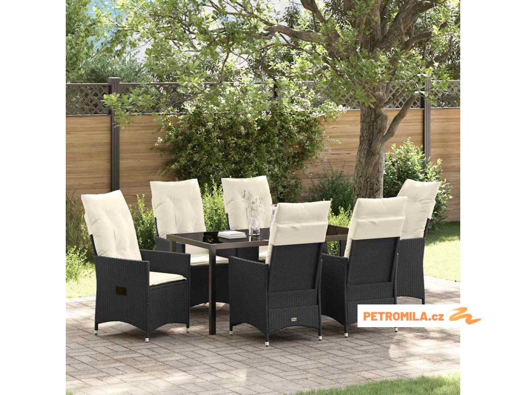 Zahradní jídelní souprava s polštářem 7 pcs Černá polyratan
