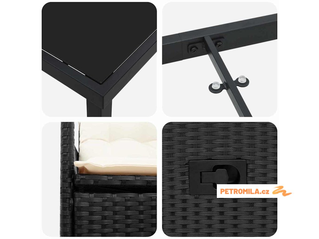 - Jednoduchá péče a údržba Chcete-li zajistit jeho dlouhou životnost, zakrývejte set, když ho nepoužíváte. Polštáře mají odnímatelné a pratelné potahy, což zjednodušuje údržbu a udržuje set v čistotě po celý rok.