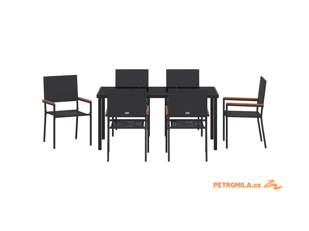 Zahradní jídelní souprava s polštářem 7 pcs Černá polyratan