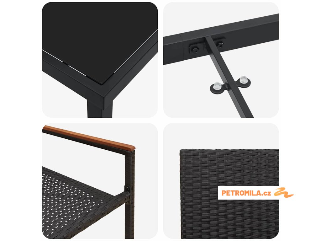 - Materiály: Tenhle set je z odolného poly ratanu, který skvěle doplňuje venkovní prostředí. Tvrzené sklo na stole je snadno čistitelné a vypadá super.