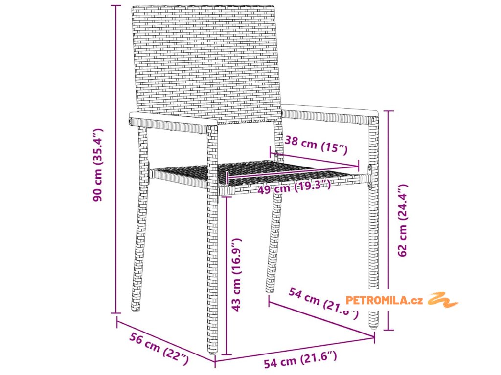 - 6 x Zahradní židle: 54 x 56 x 90 cm (D x Š x V)
