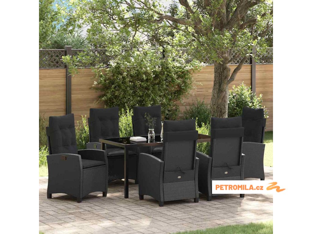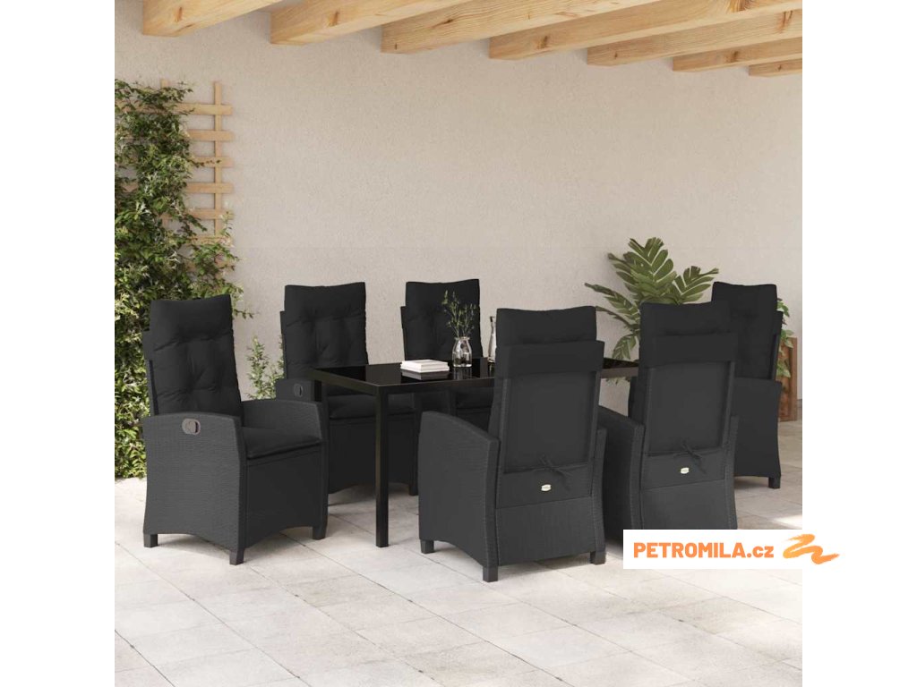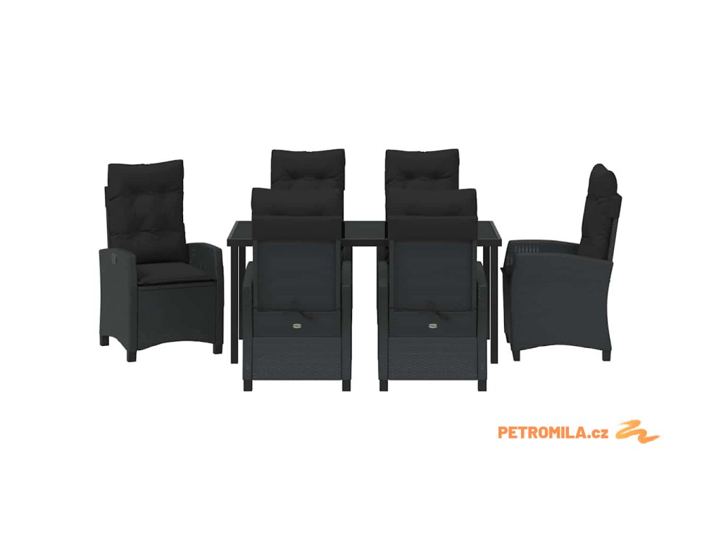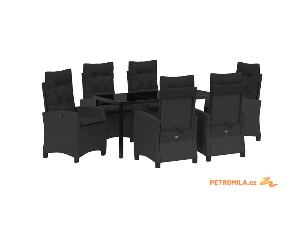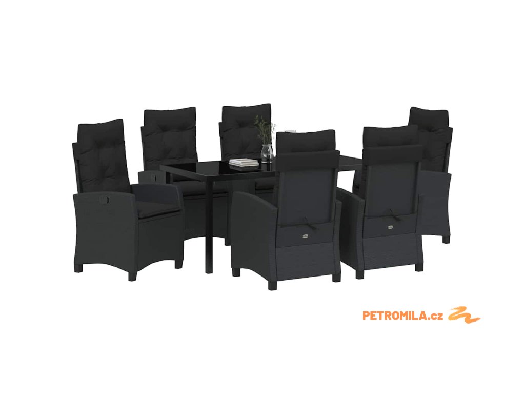 Zahradní jídelní souprava s polštářem 7 pcs Černá polyratan