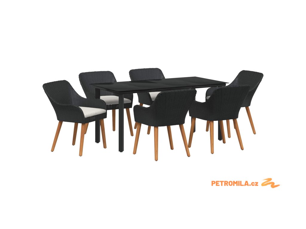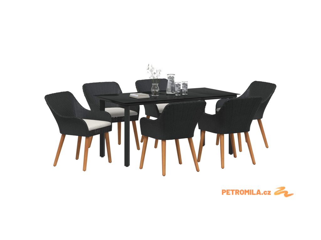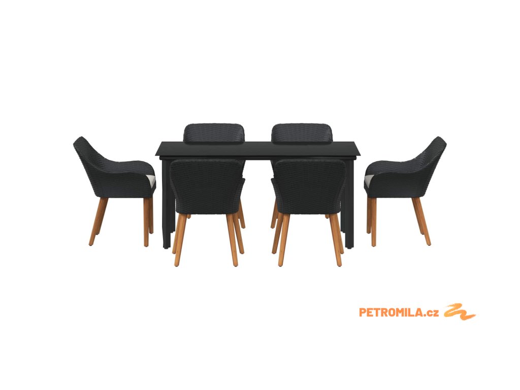 Zahradní jídelní souprava s polštářem 7 pcs Černá polyratan