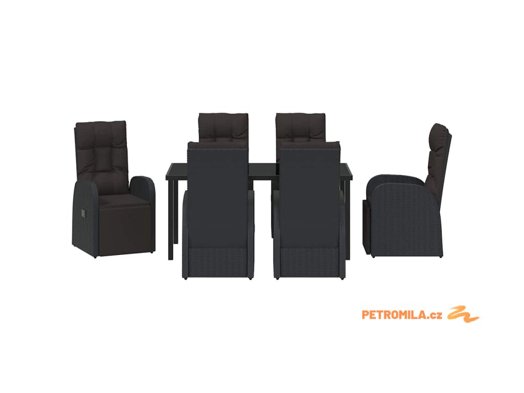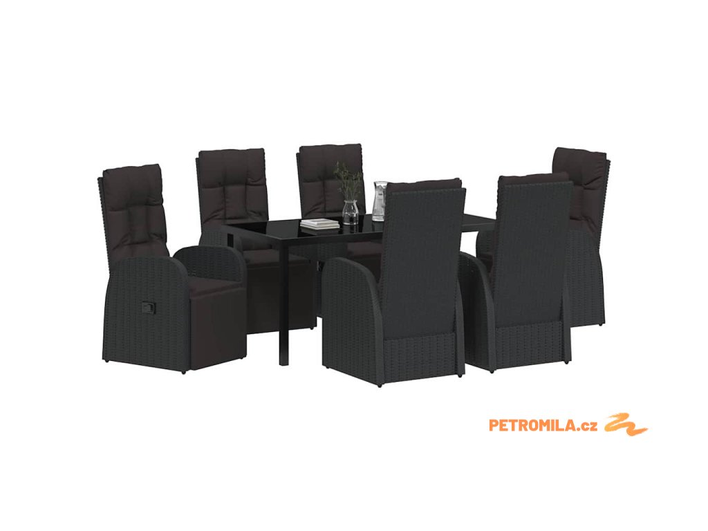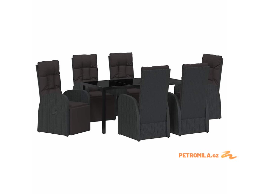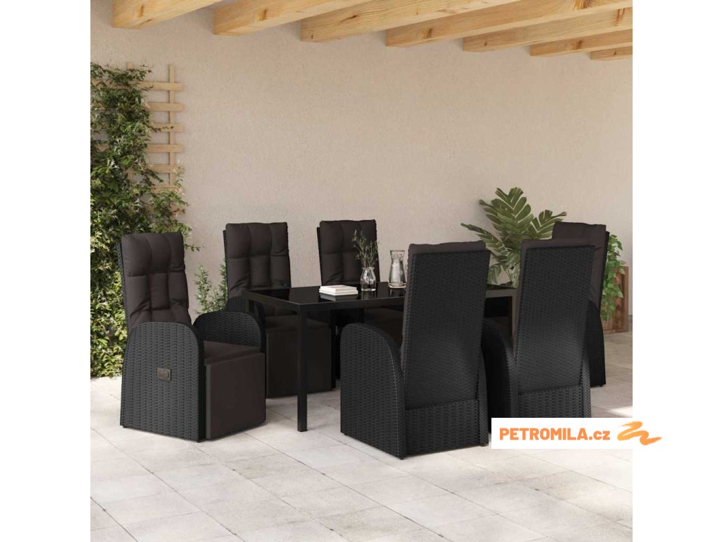 Zahradní jídelní souprava s polštářem 7 pcs Černá polyratan