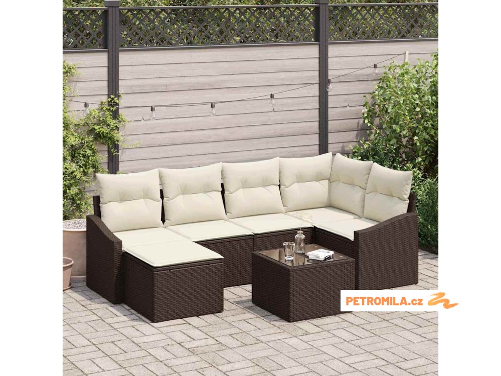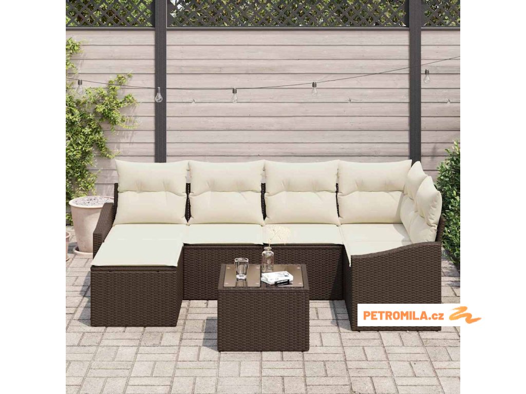 Zahradní jídelní souprava s polštářem 7 pcs Hnědá a krémová
