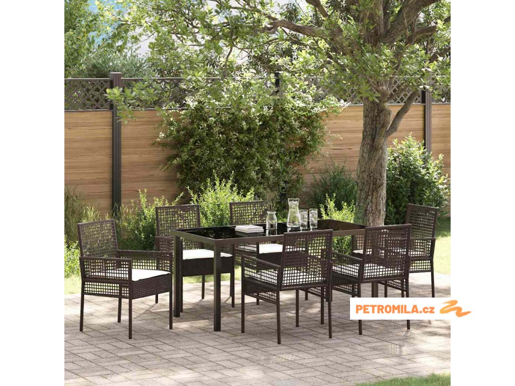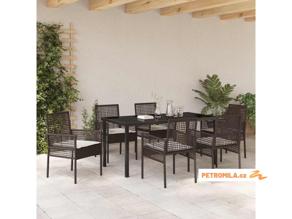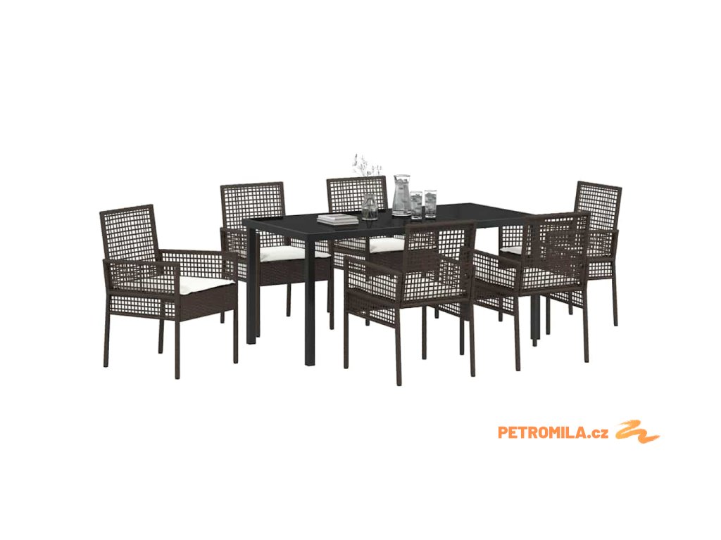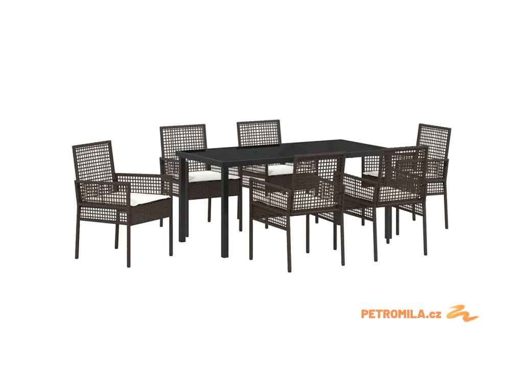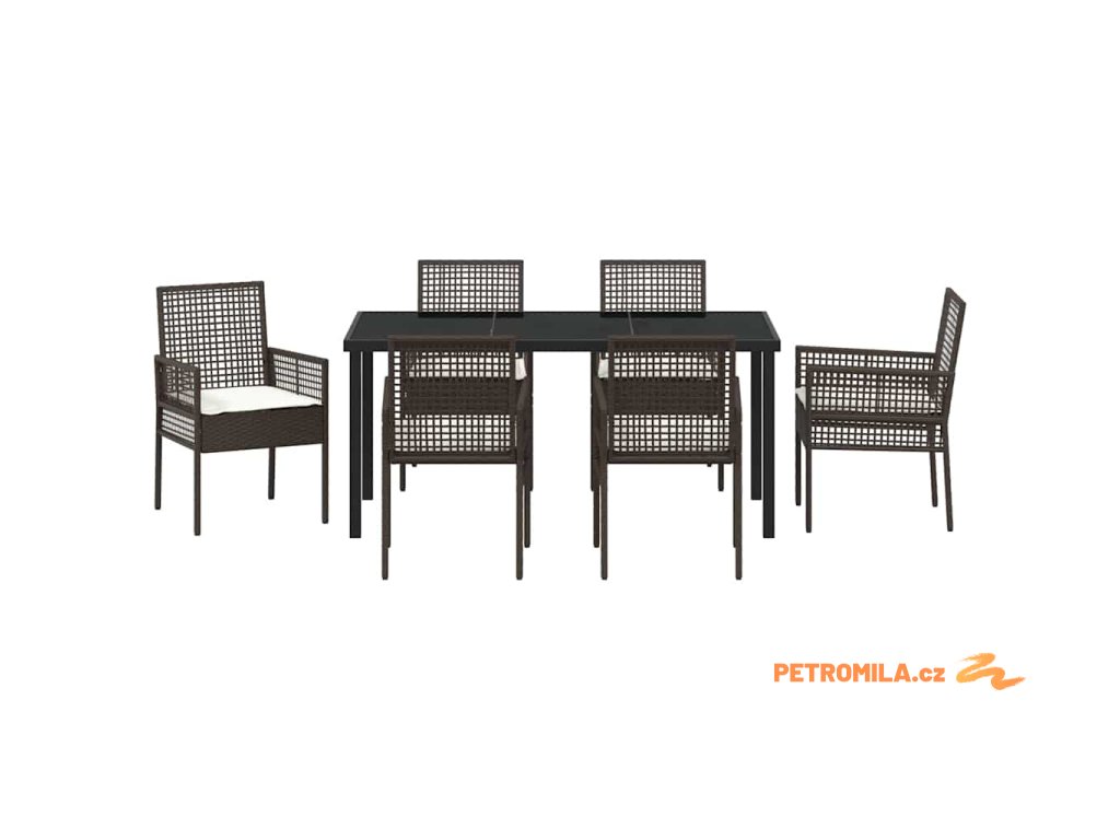 Zahradní jídelní souprava s polštářem 7 pcs Hnědá Poly ratan