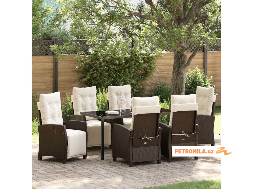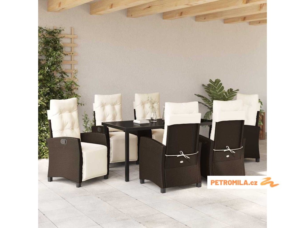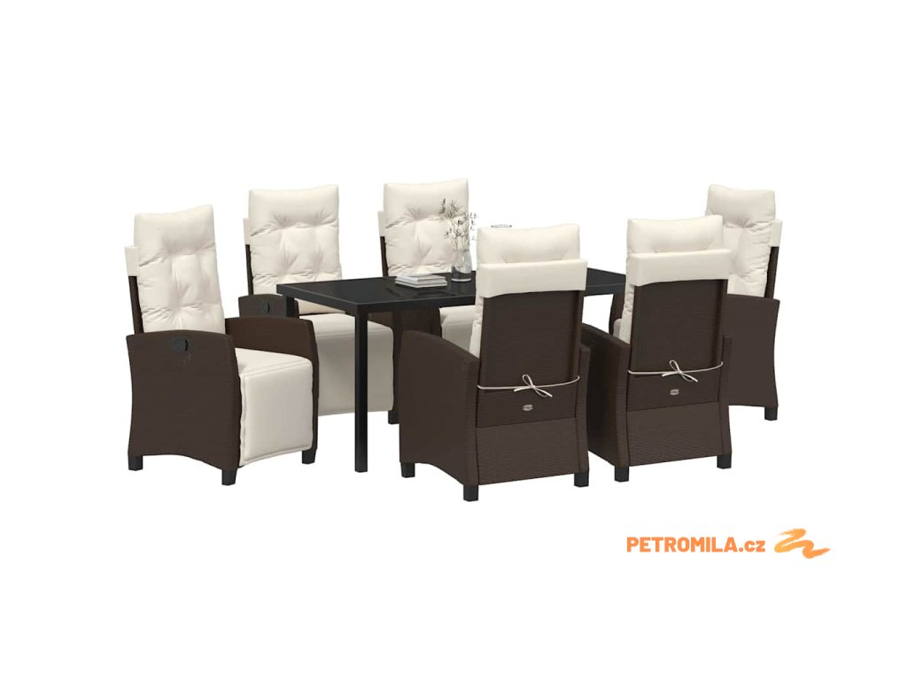 Zahradní jídelní souprava s polštářem 7 pcs Hnědá polyratan