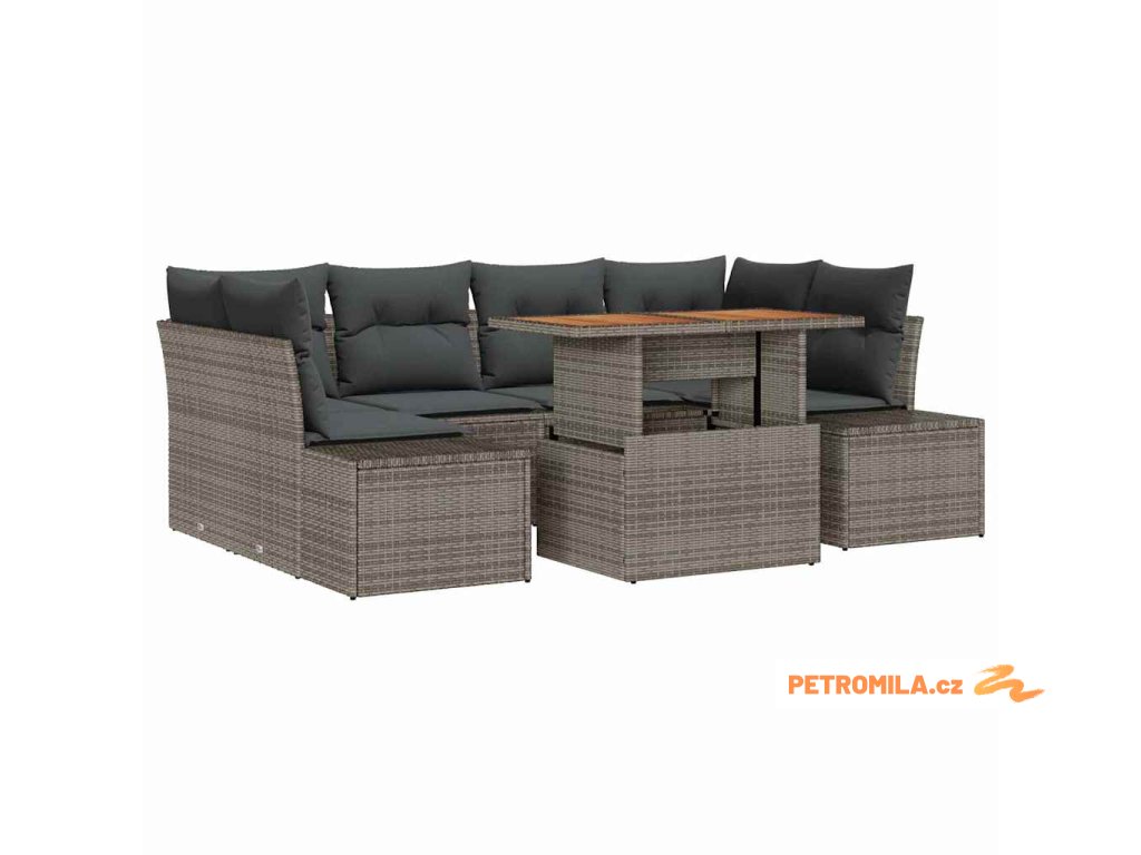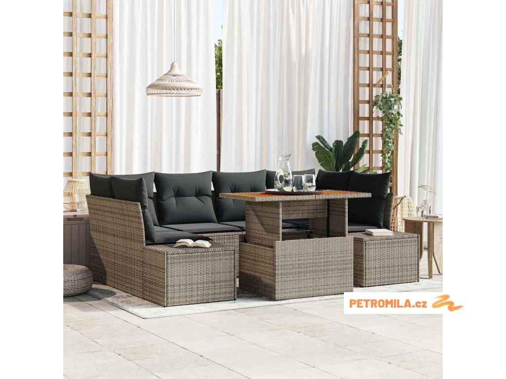 Zahradní jídelní souprava s polštářem 7 pcs Šedá a hnědá