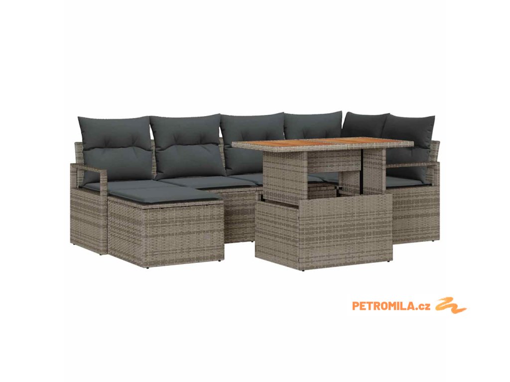 Zahradní jídelní souprava s polštářem 7 pcs Šedá a hnědá