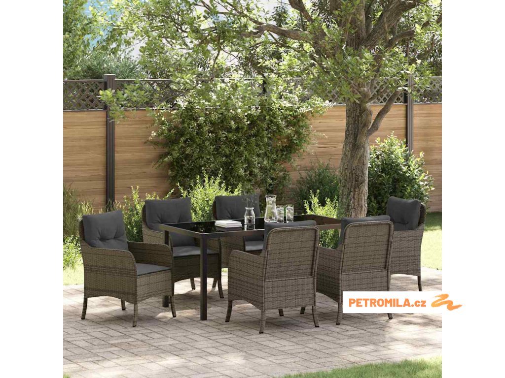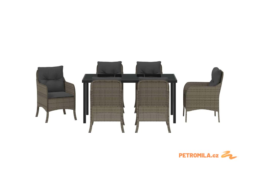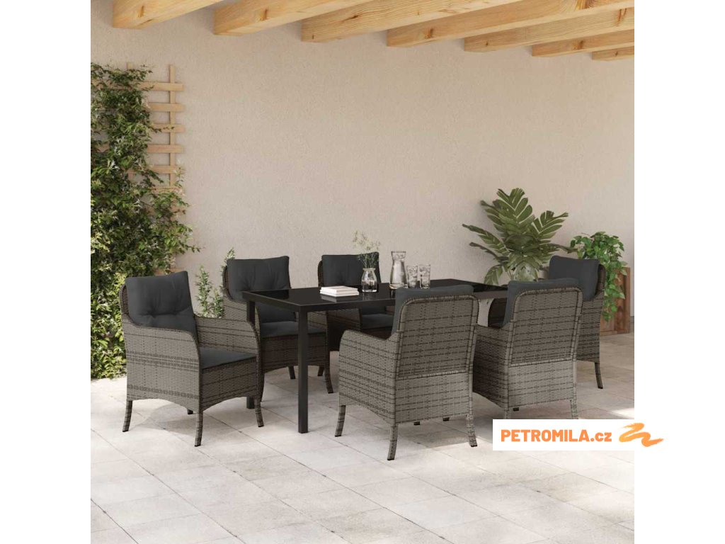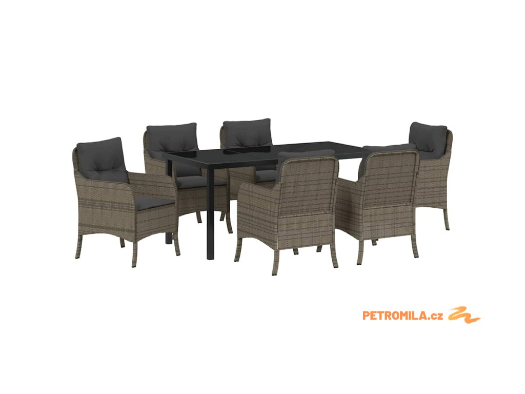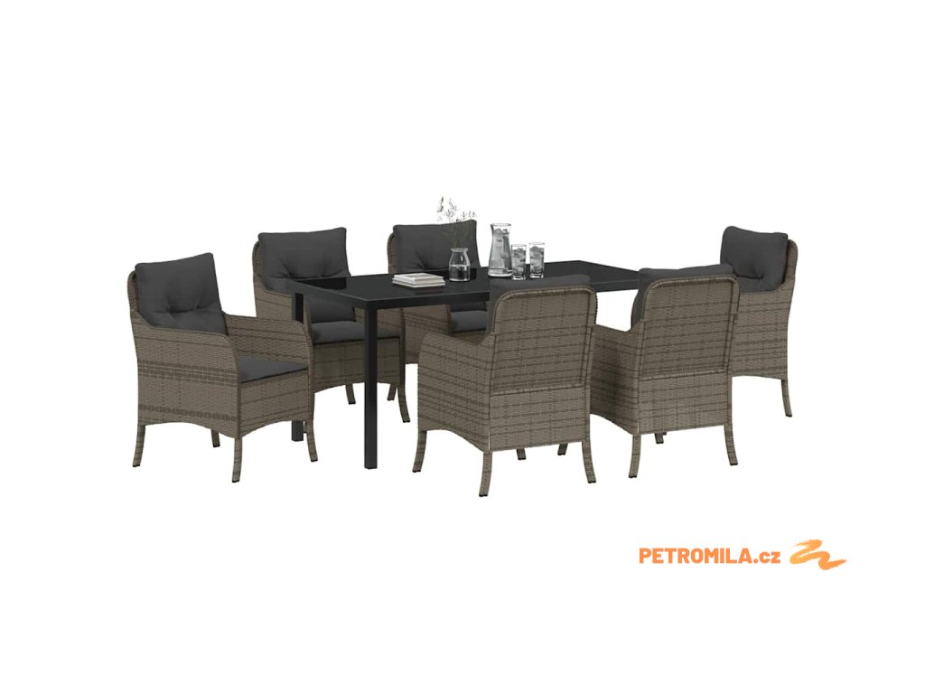 Zahradní jídelní souprava s polštářem 7 pcs Šedá Poly ratan