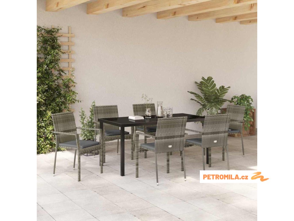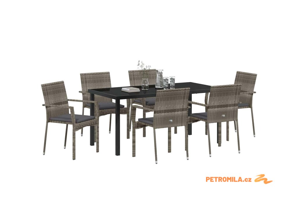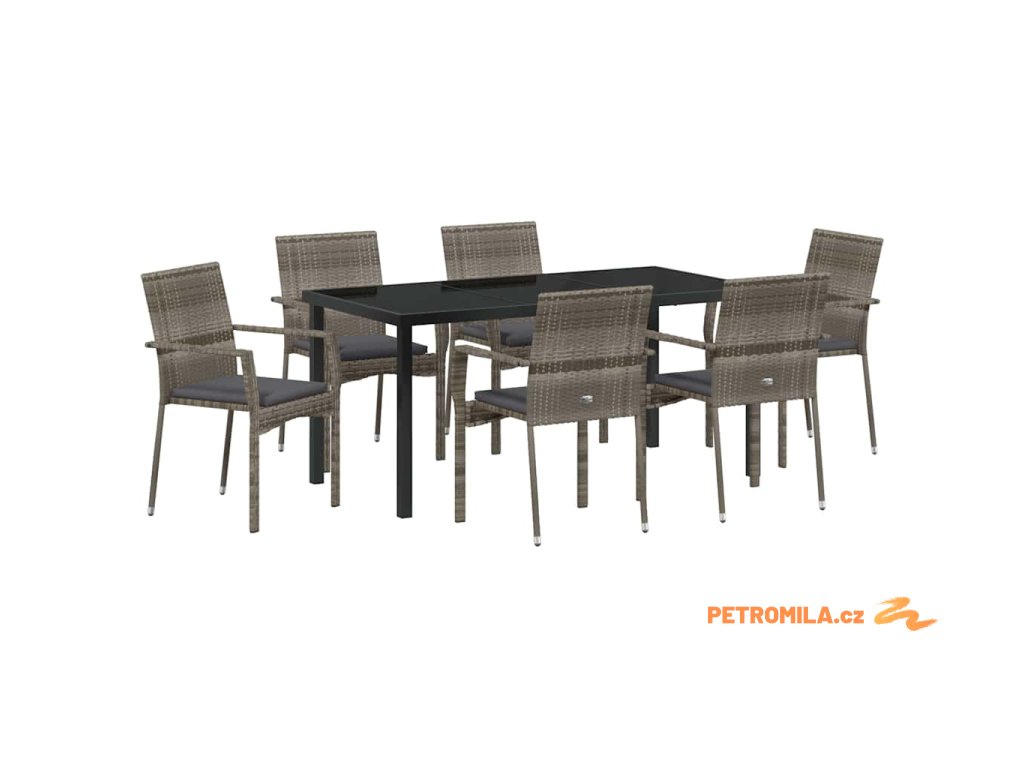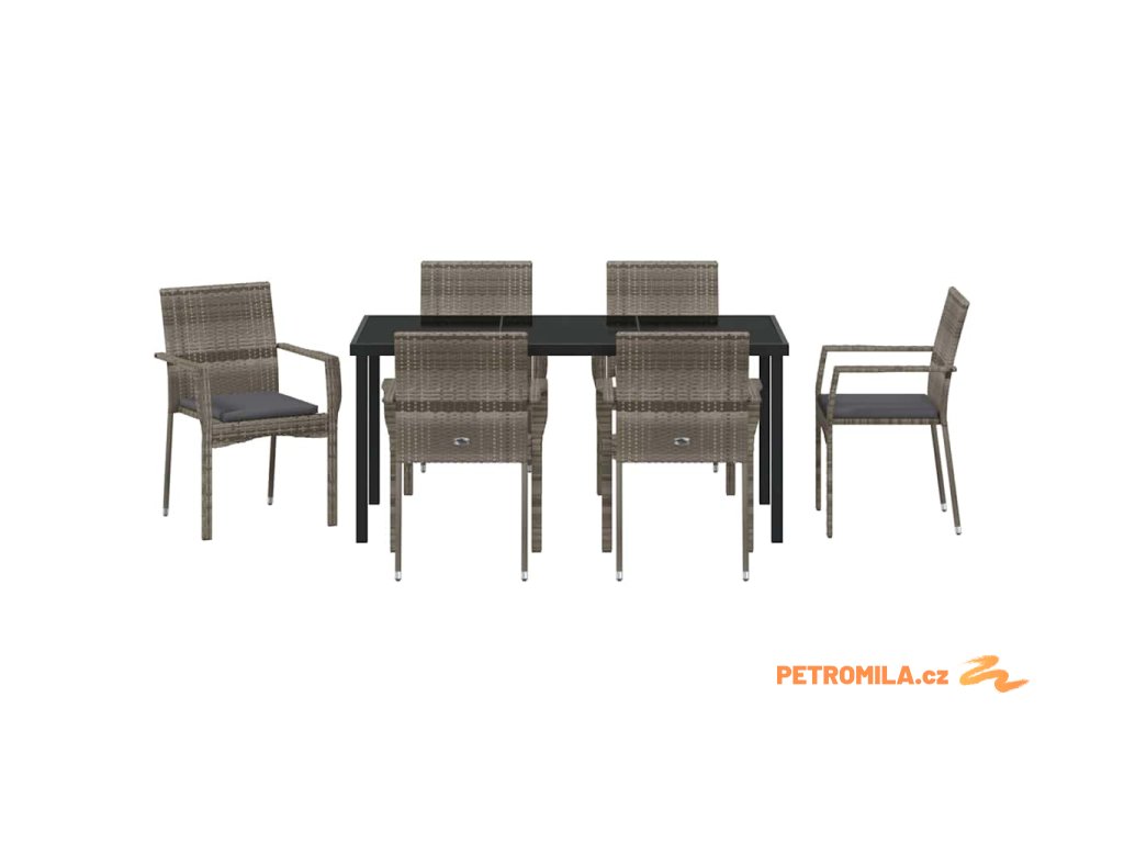 Zahradní jídelní souprava s polštářem 7 pcs Šedá Poly ratan