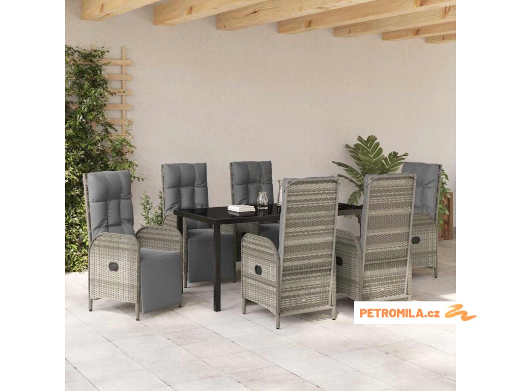 Zahradní jídelní souprava s polštářem 7 pcs Šedá Poly ratan