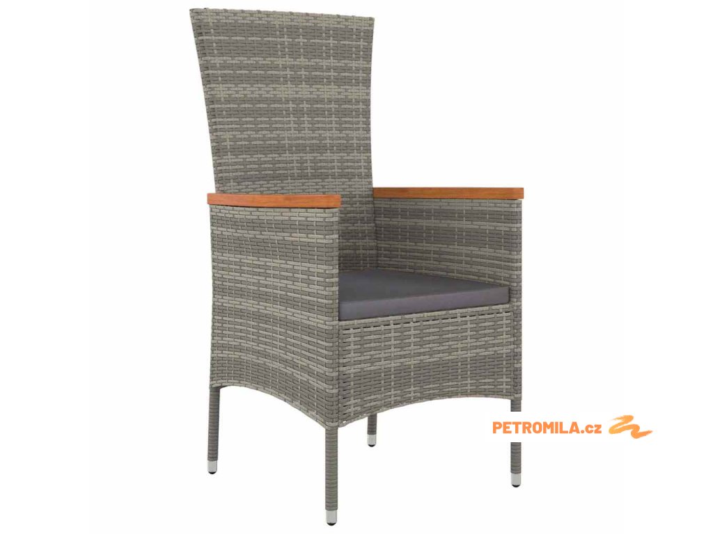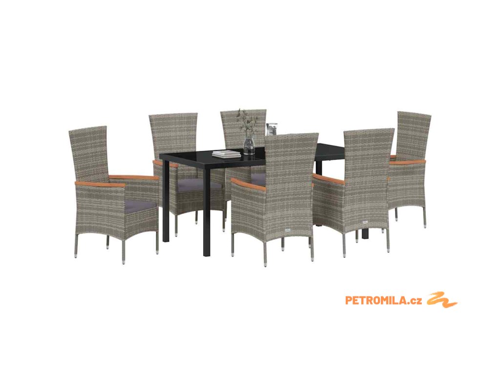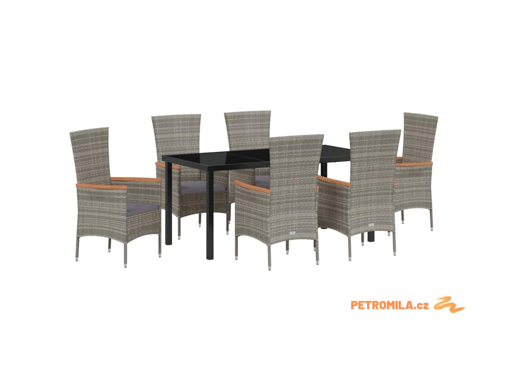 Zahradní jídelní souprava s polštářem 7 pcs Šedá Poly ratan