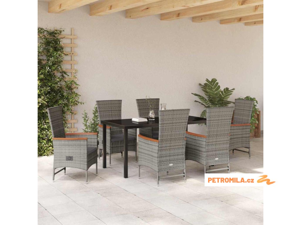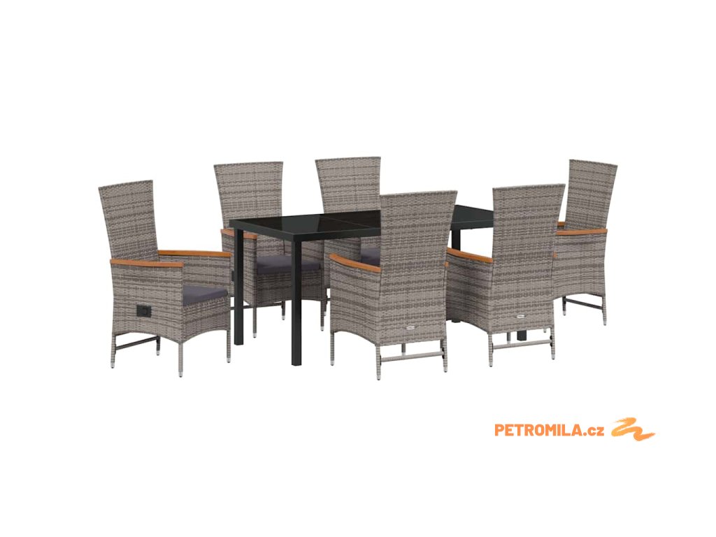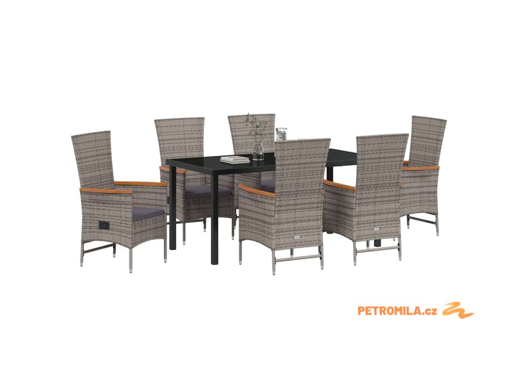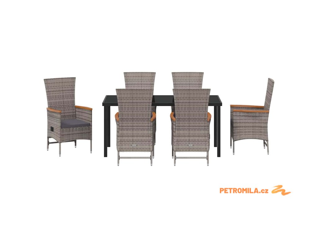 Zahradní jídelní souprava s polštářem 7 pcs Šedá Poly ratan