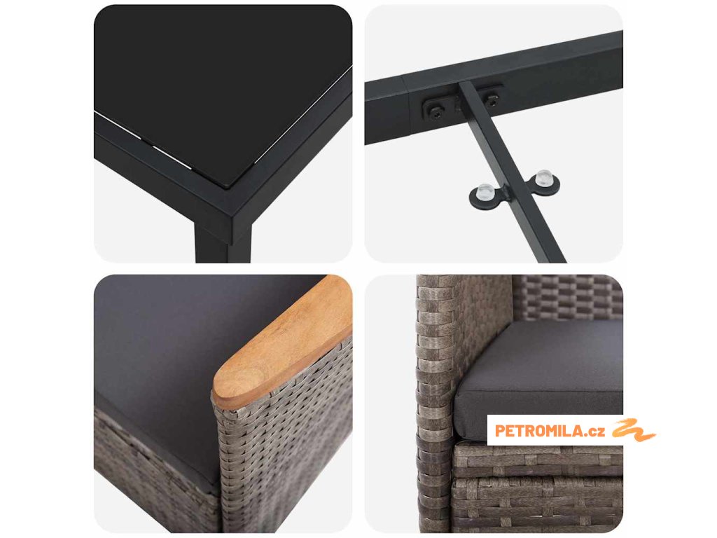 Tato venkovní nábytková sada je jasná volba pro terasu nebo zahradu, s elegantním a moderním designem. Skvělá pro ty, suitable for co hledají funkčnost i styl, zlepšuje čas trávený venku pro všechny. Navržená do venkovních prostor, vytváří příjemnou atmosféru, která láká přátele a rodinu k relaxaci, ať už samy nebo s ostatními. Když ji dáte na terasu nebo u bazénu, je ideální na útulná setkání, nebo klidné chvíle o samotě.