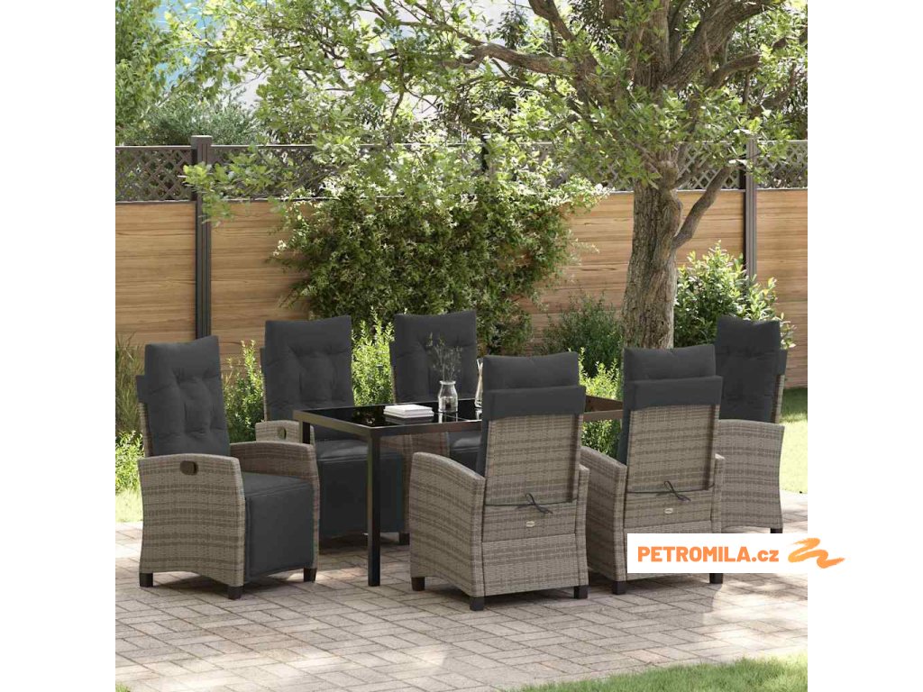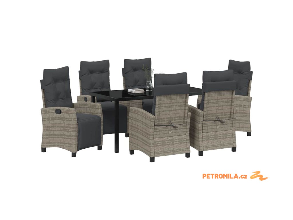 7dílný zahradní jídelní set s poduškami šedý polyratan