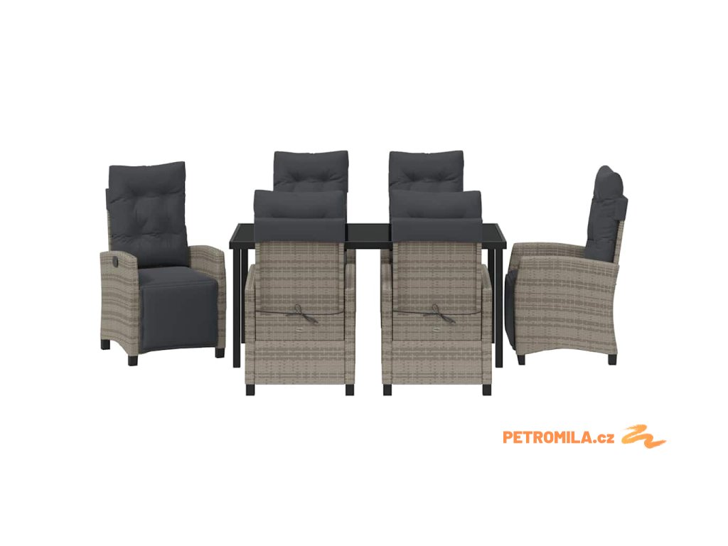 Zahradní jídelní souprava s polštářem 7 pcs Šedá polyratan