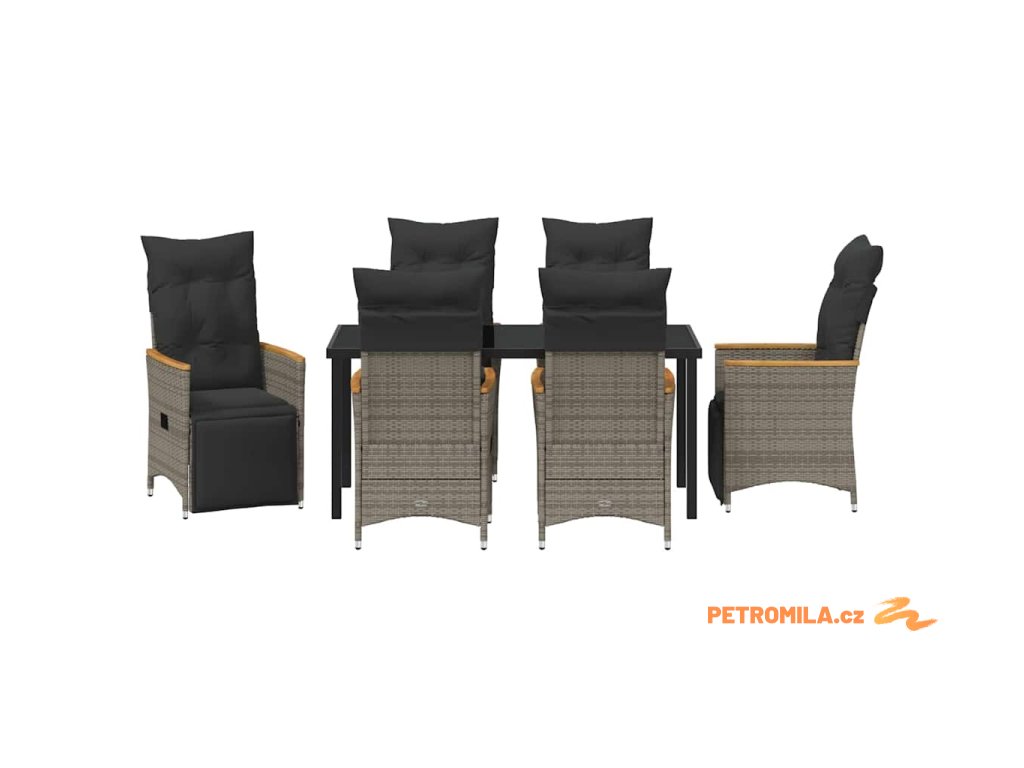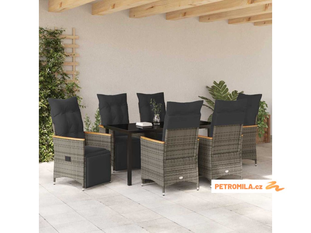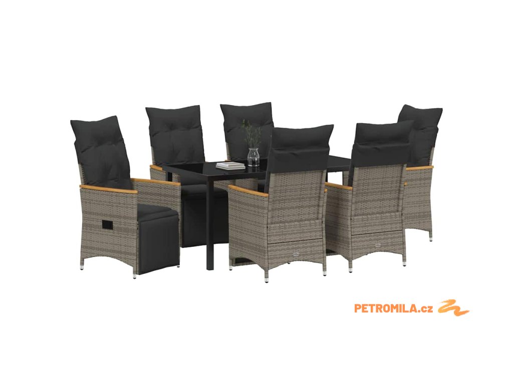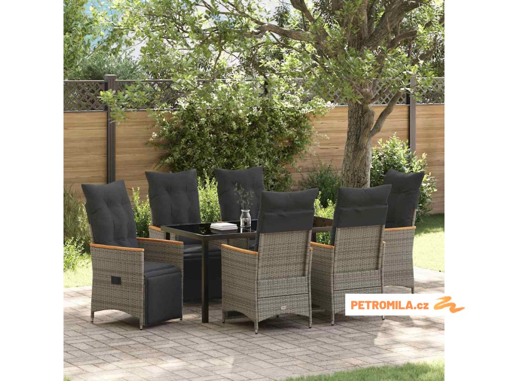 Zahradní jídelní souprava s polštářem 7 pcs Šedá polyratan