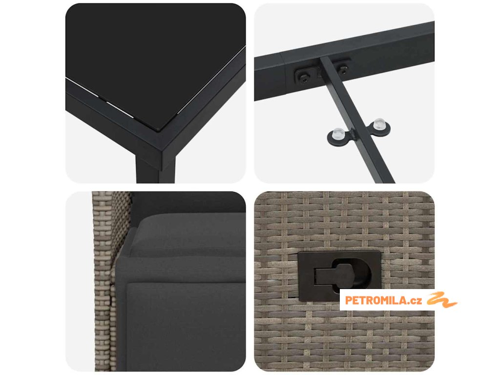 - Moderní design: Tento zahradní set má minimalistický design s práškově lakovaným ocelovým rámem a poly ratanovými povrchy. Dodává prostoru styl a eleganci.