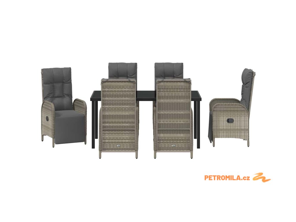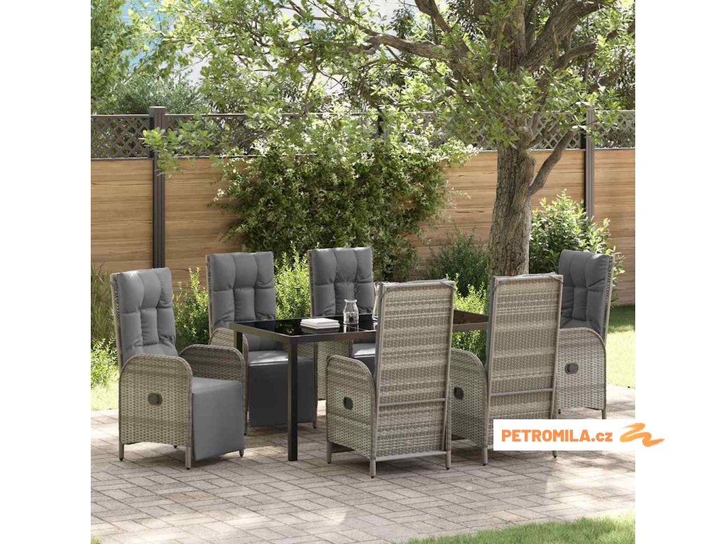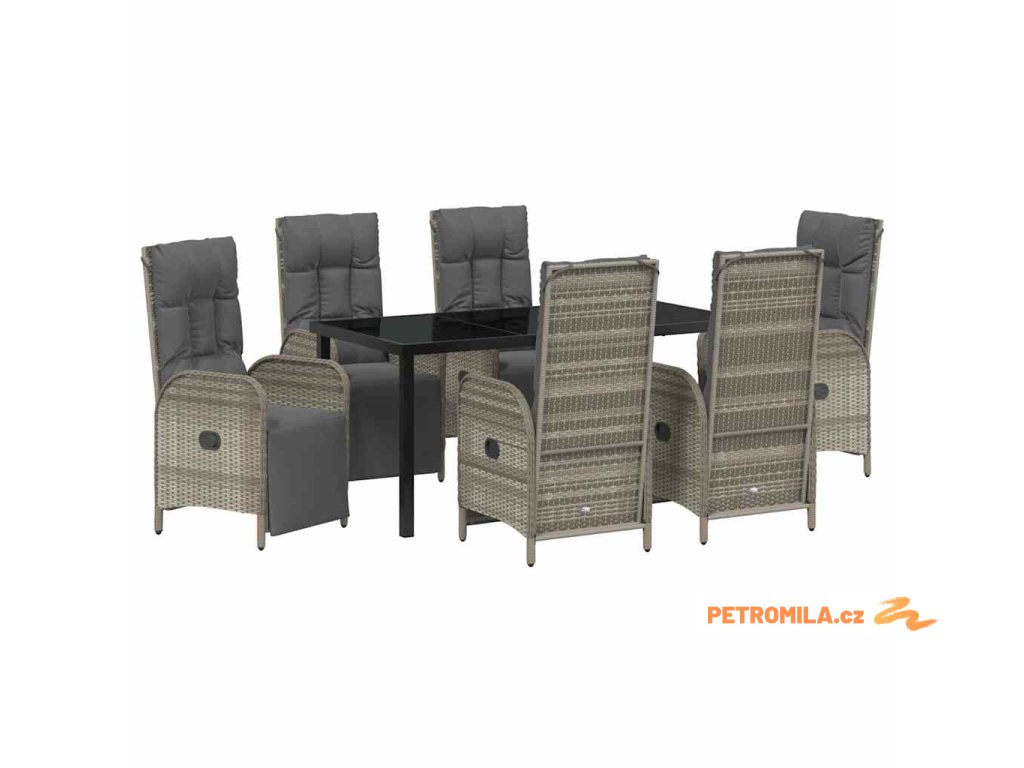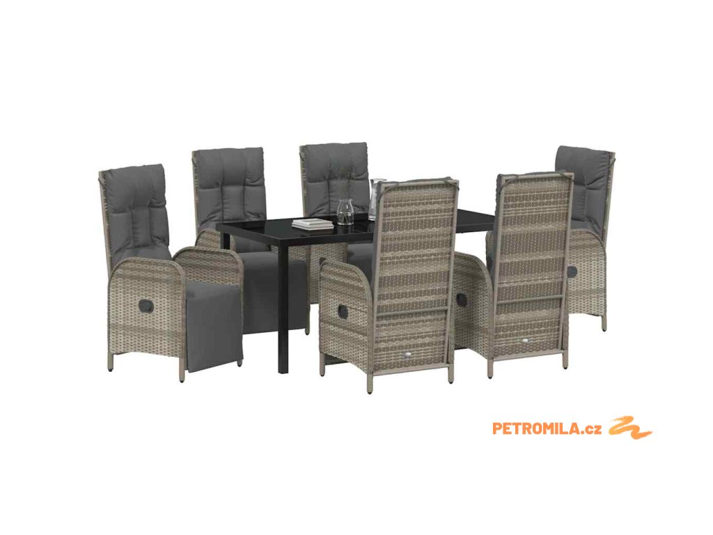 Zahradní jídelní souprava s polštářem 7 pcs Šedá polyratan