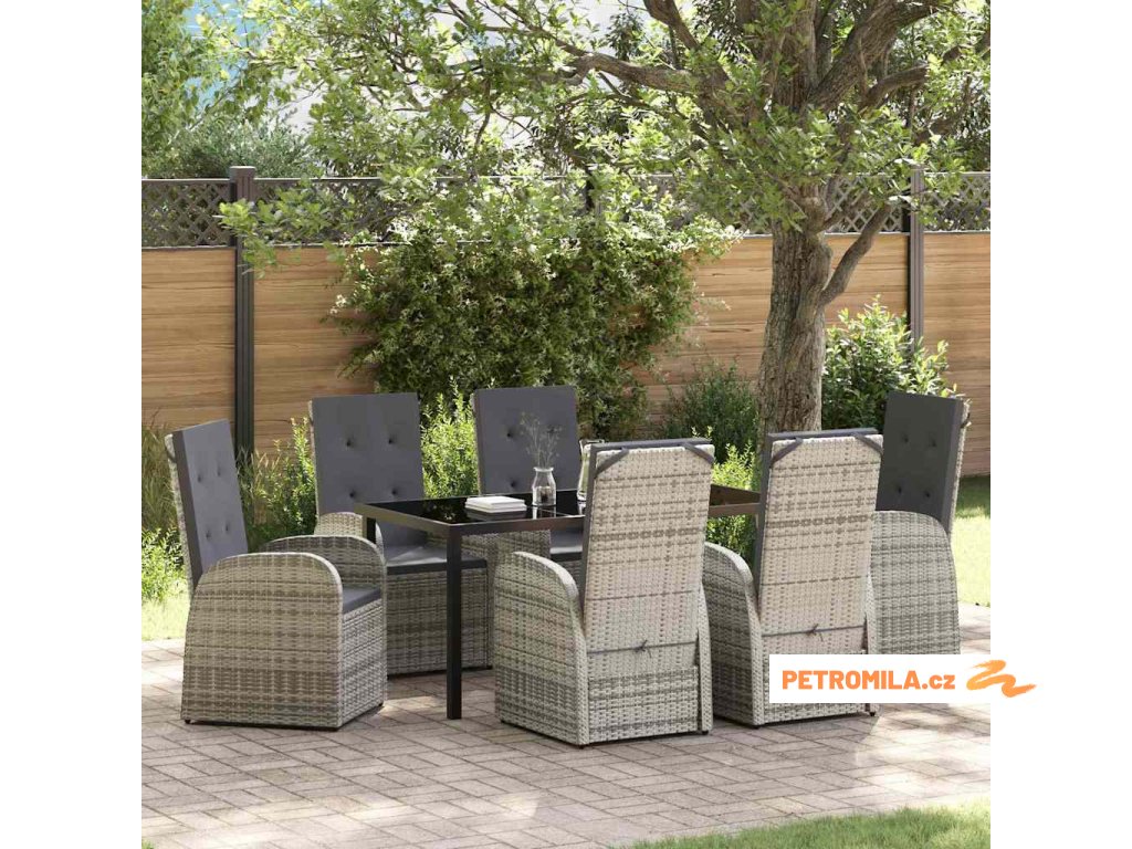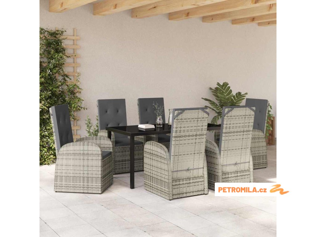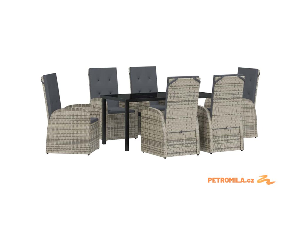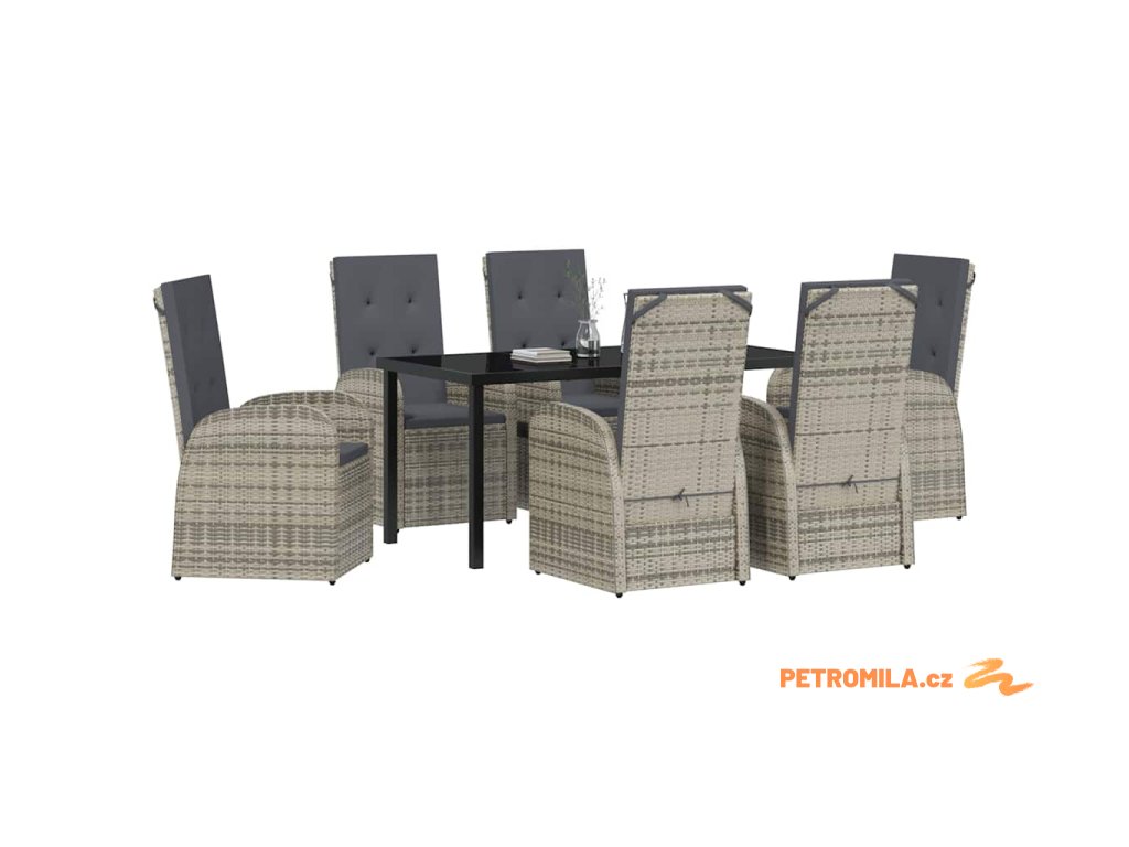 Zahradní jídelní souprava s polštářem 7 pcs Šedá polyratan