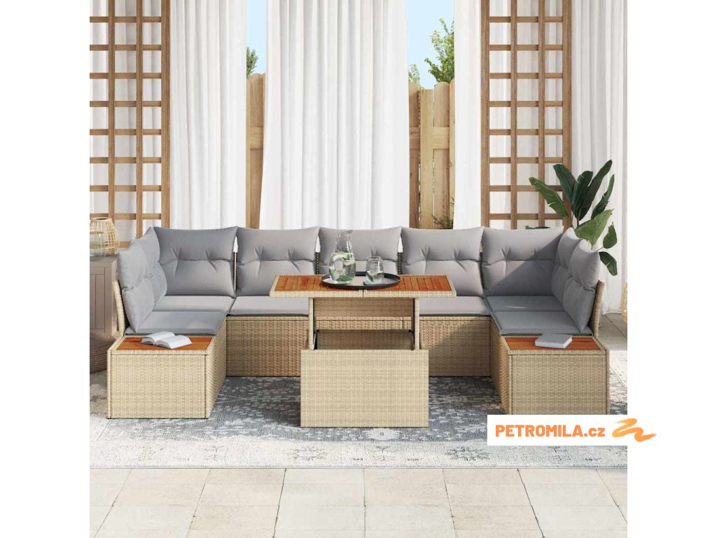 Zahradní jídelní souprava s polštářem 8 pcs Beige a šedá