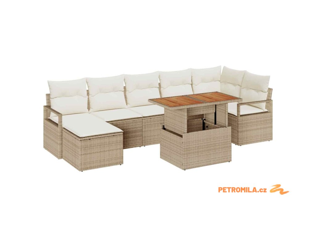 Zahradní jídelní souprava s polštářem 8 pcs Béžová a krémová