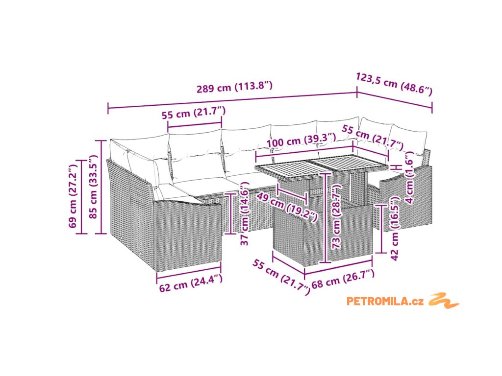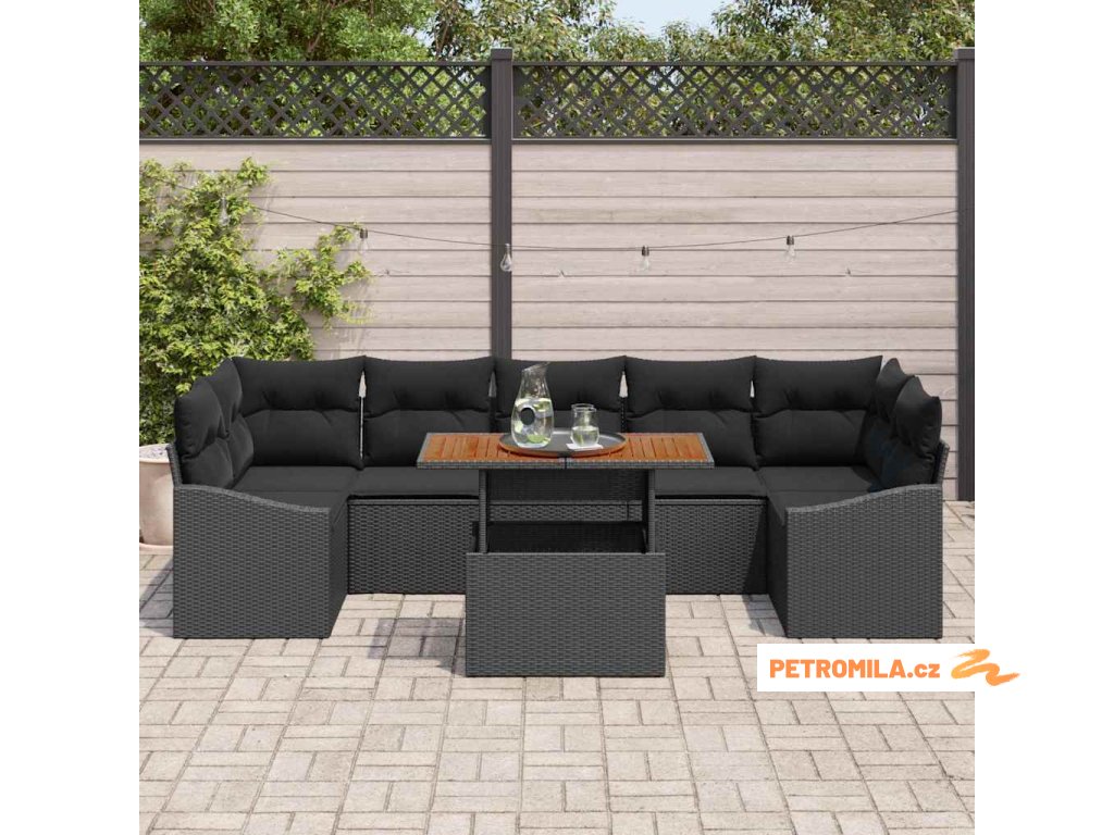 Zahradní jídelní souprava s polštářem 8 pcs Černá a hnědá