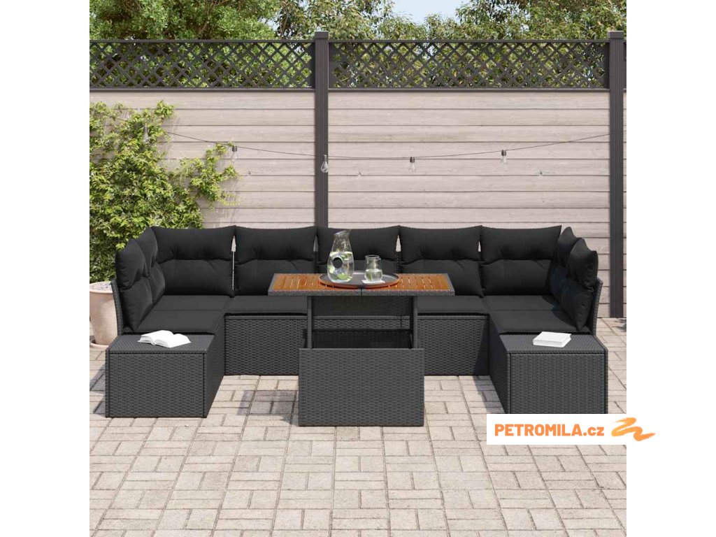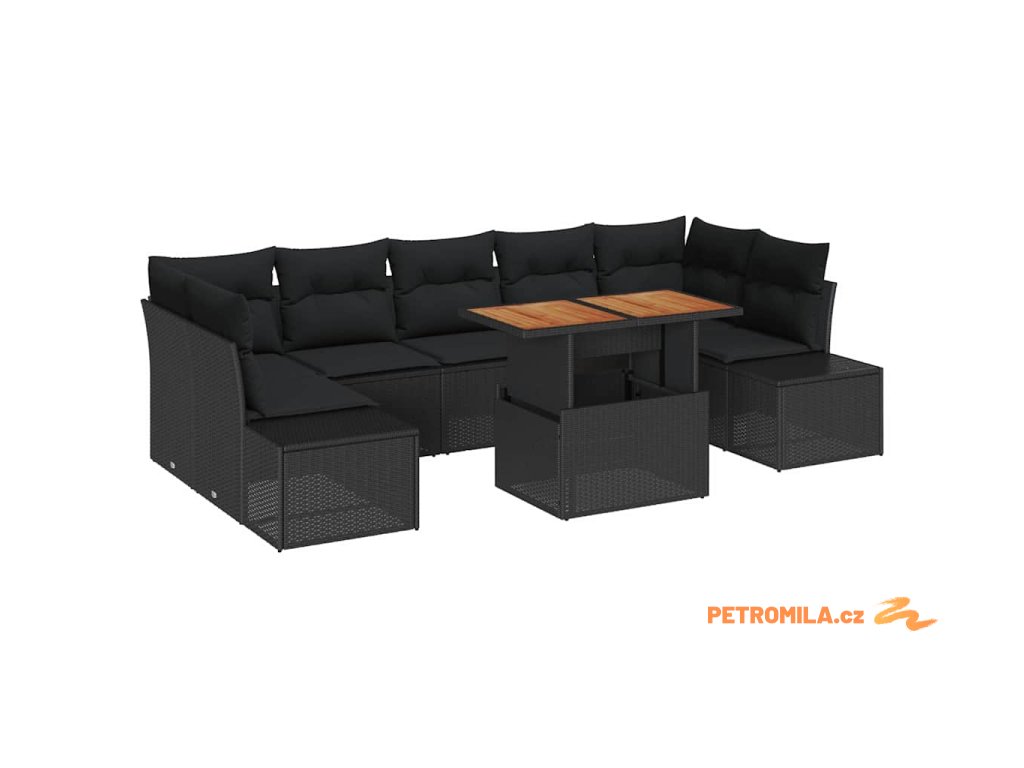 Zahradní jídelní souprava s polštářem 8 pcs Černá a hnědá