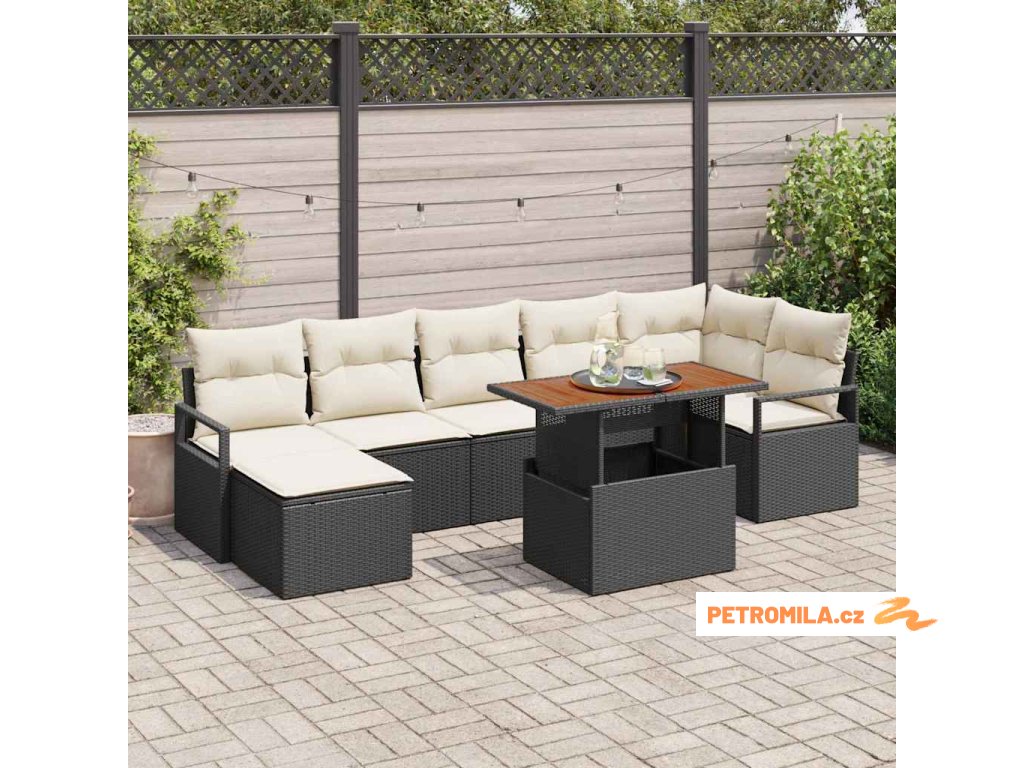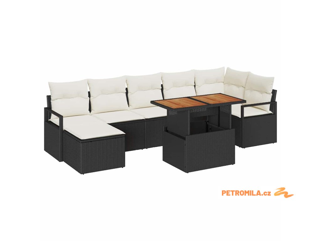 Zahradní jídelní souprava s polštářem 8 pcs Černá a krémová