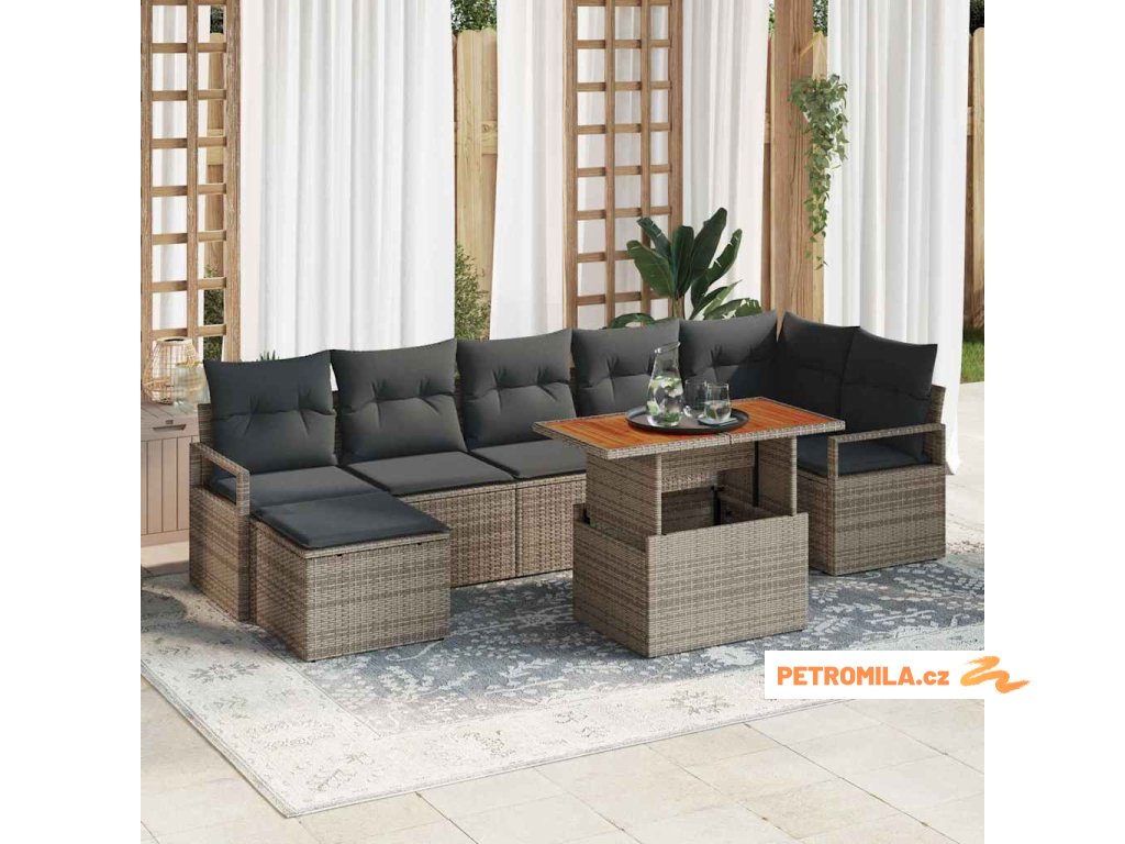 Zahradní jídelní souprava s polštářem 8 pcs Šedá a hnědá